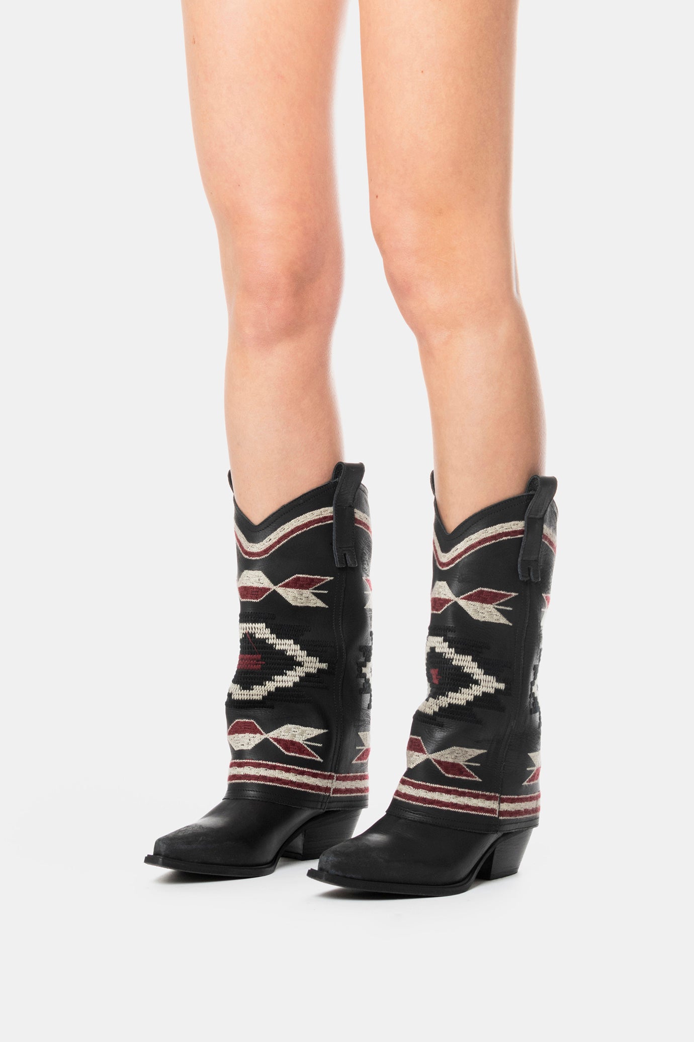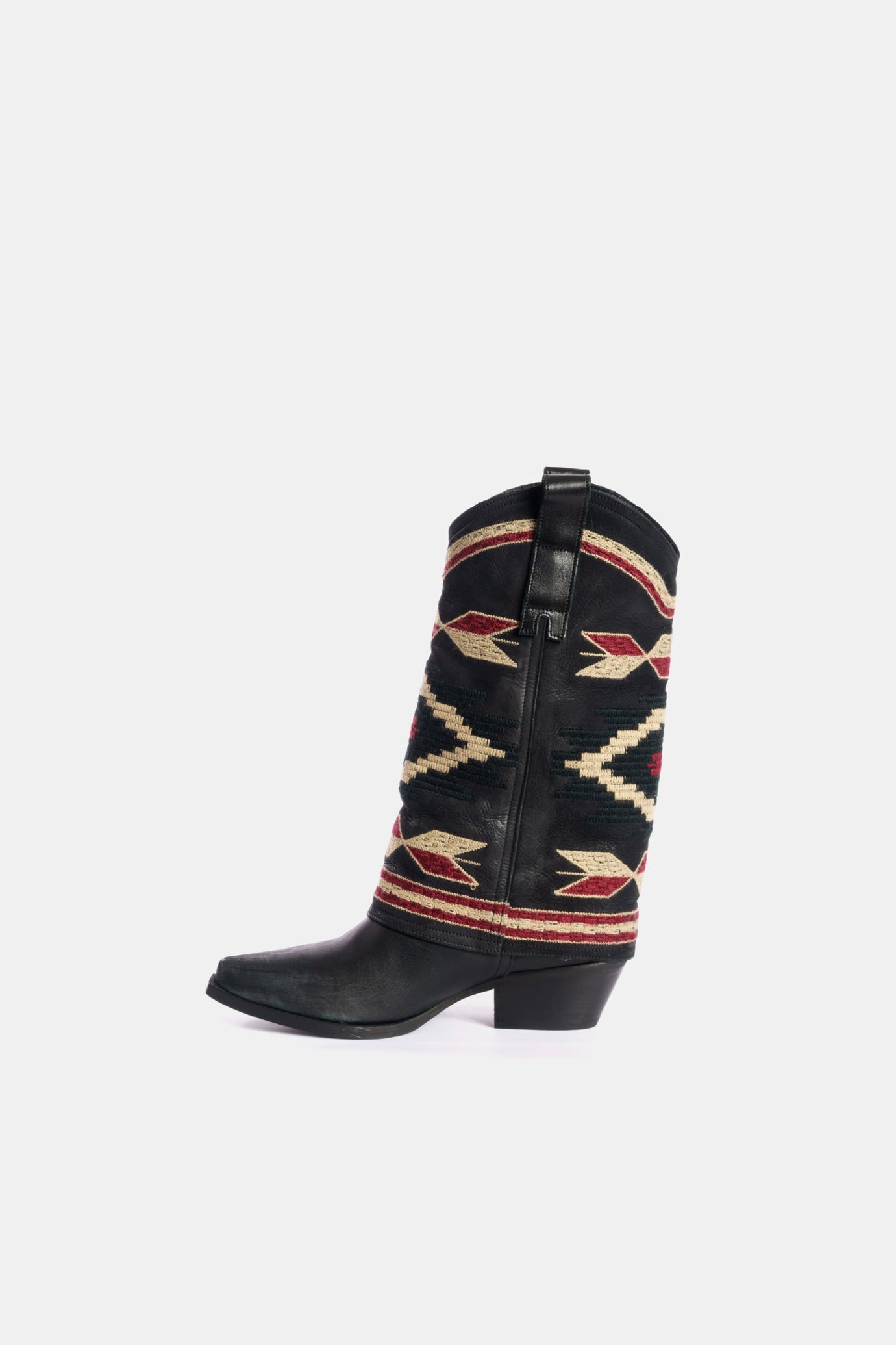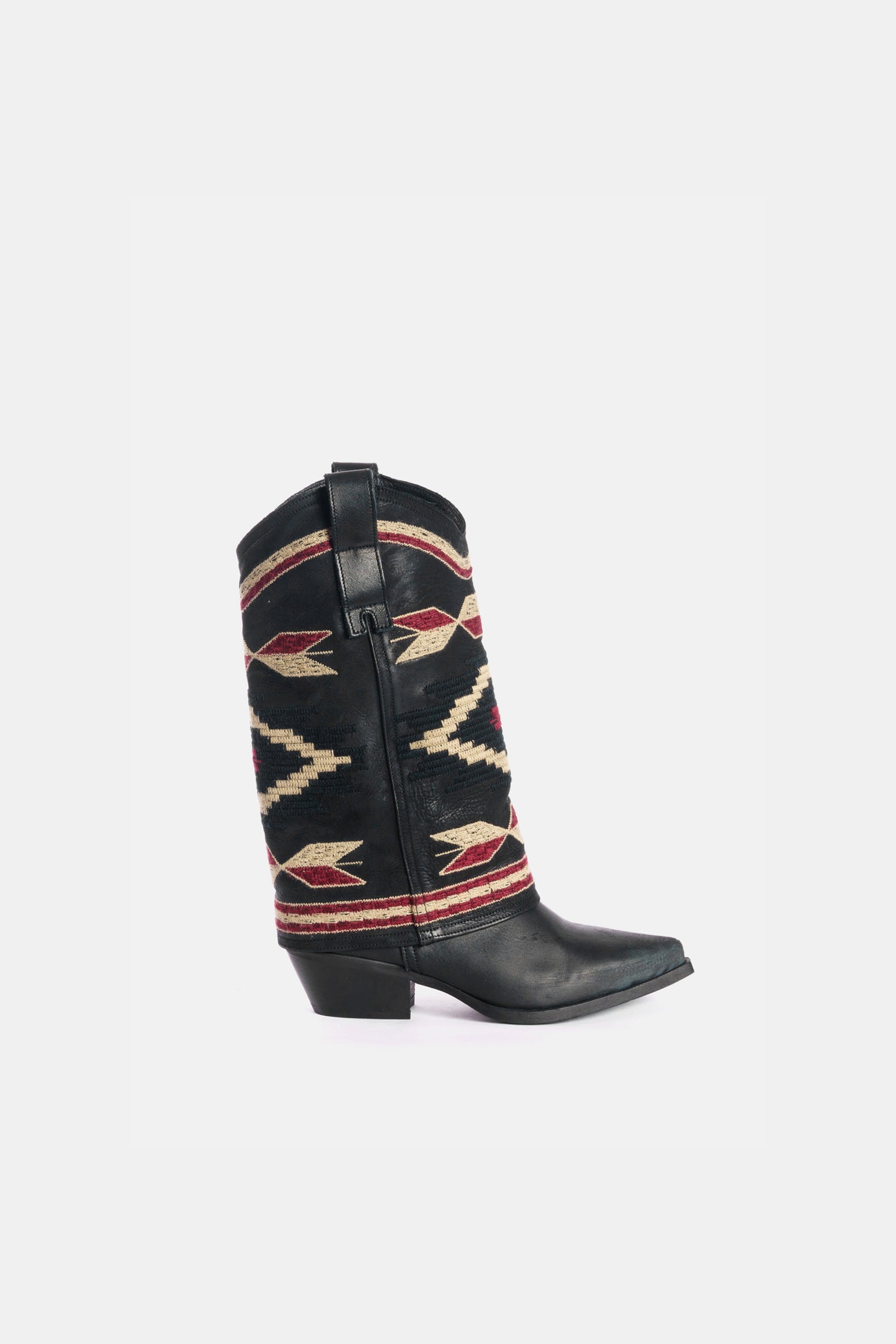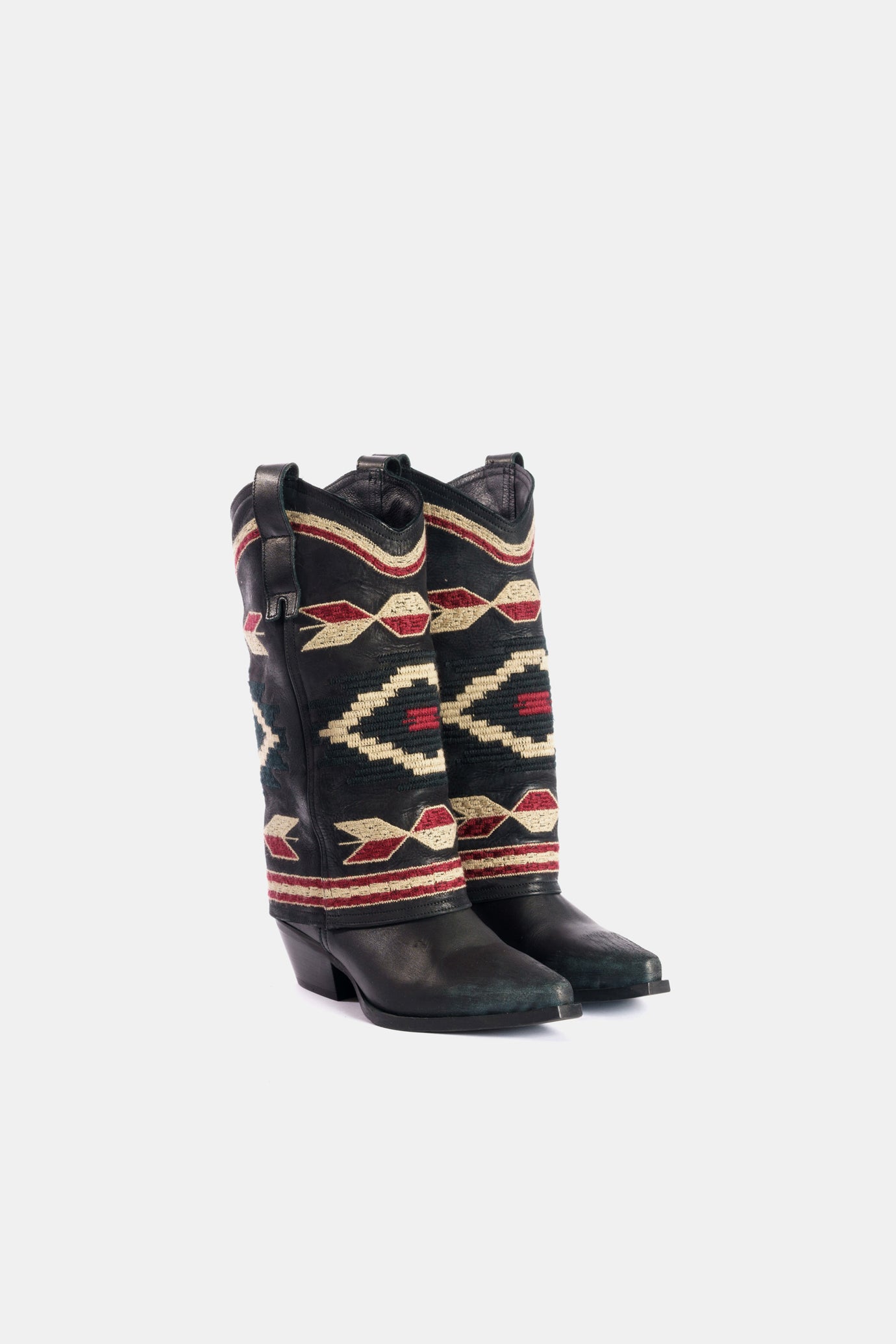 Stivali texani vitello vintage nero con ricami etnici DX638