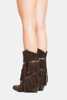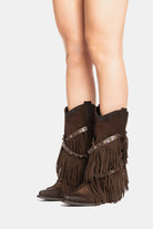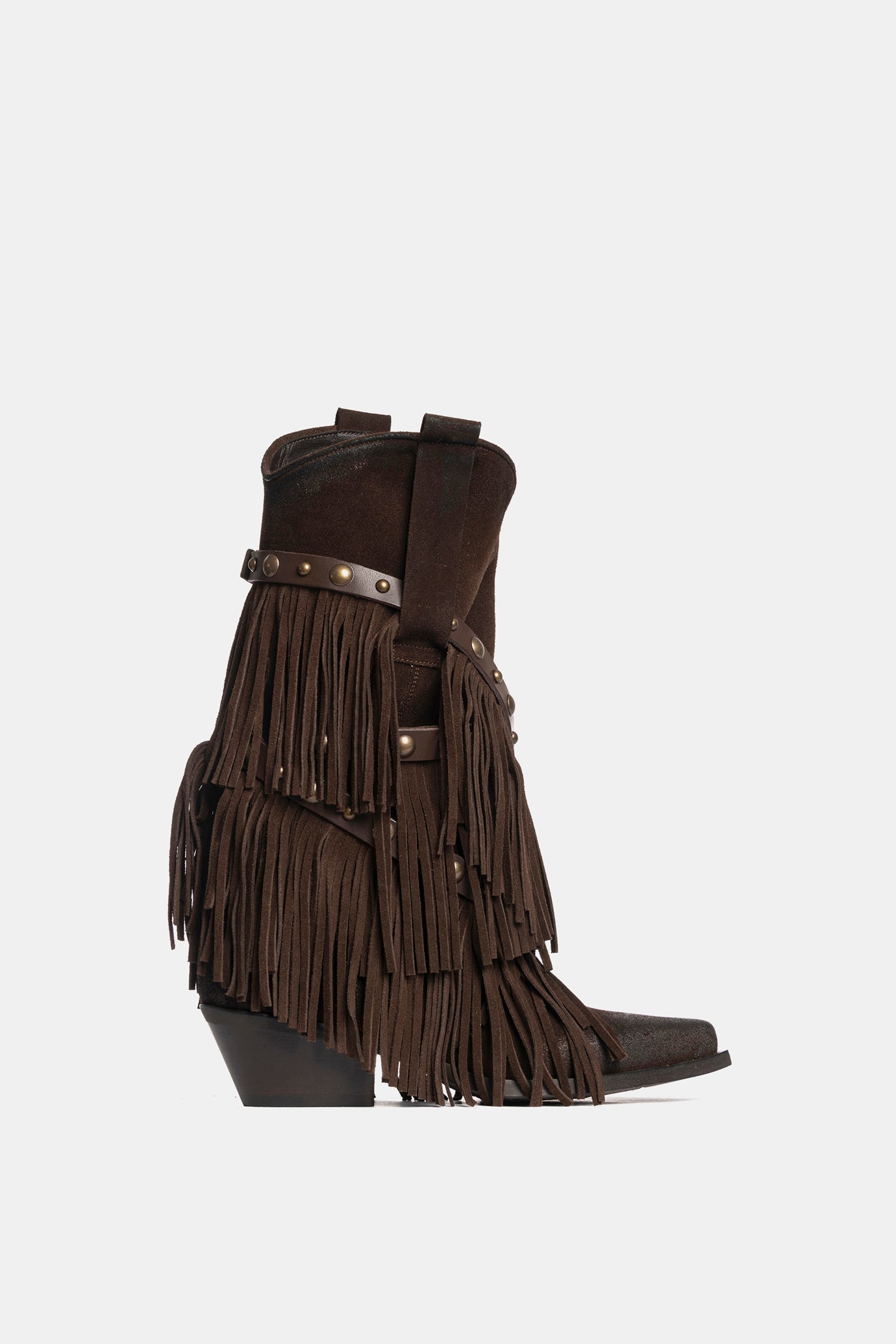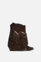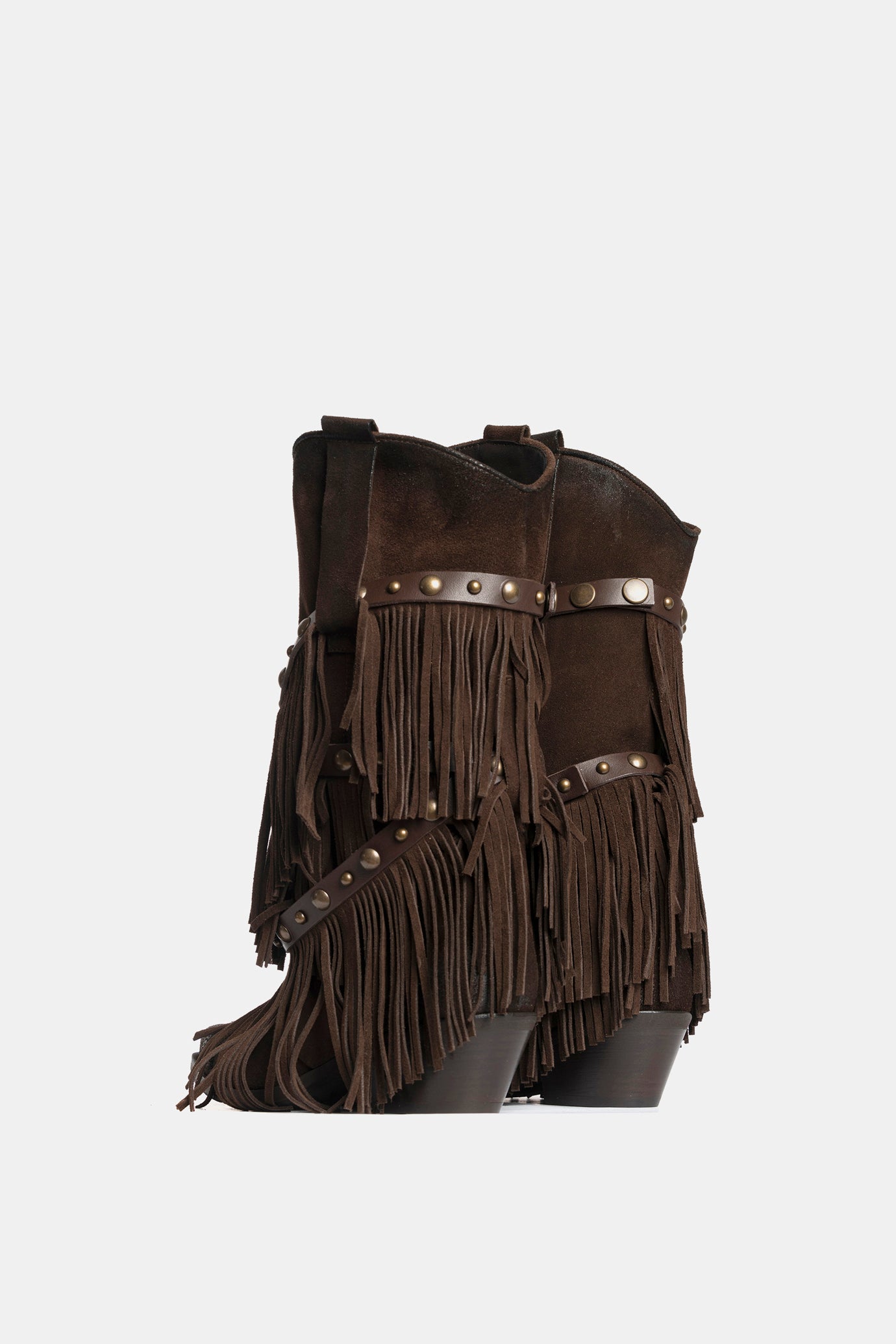 Stivali texani in camoscio testa di moro con frange e borchie amovibili