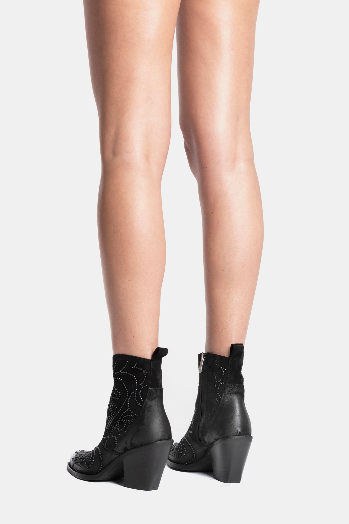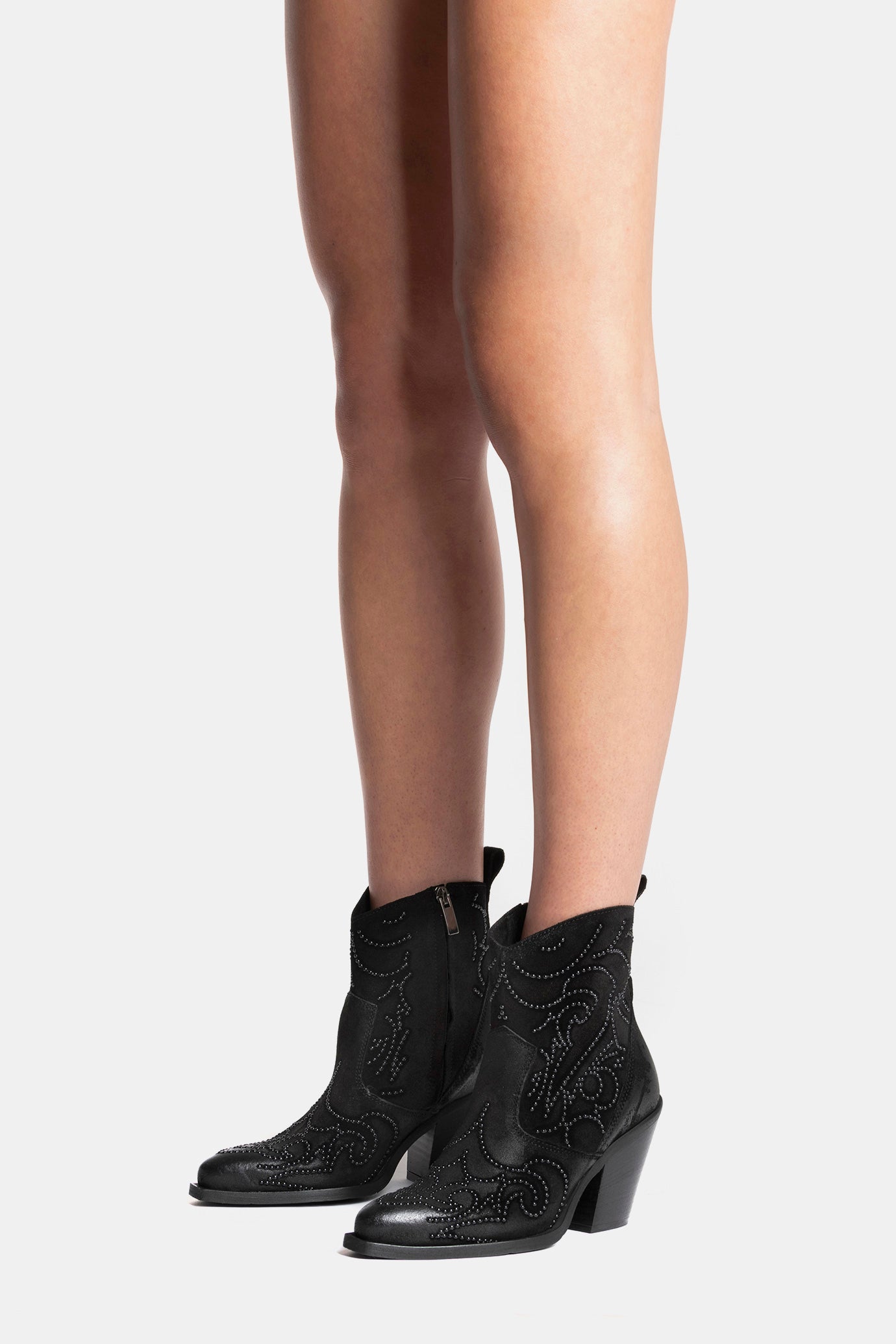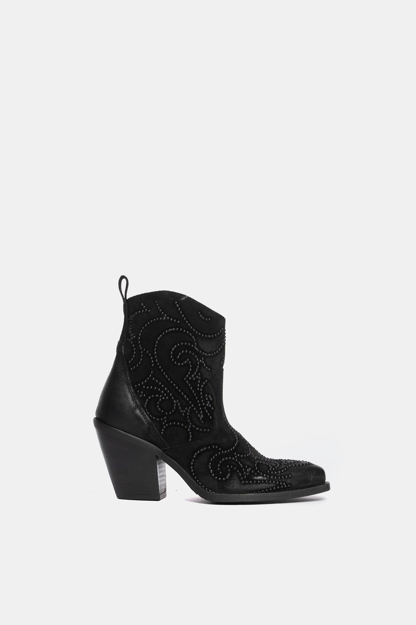 Tronchetti texani realizzati in camoscio impreziositi da borchie.