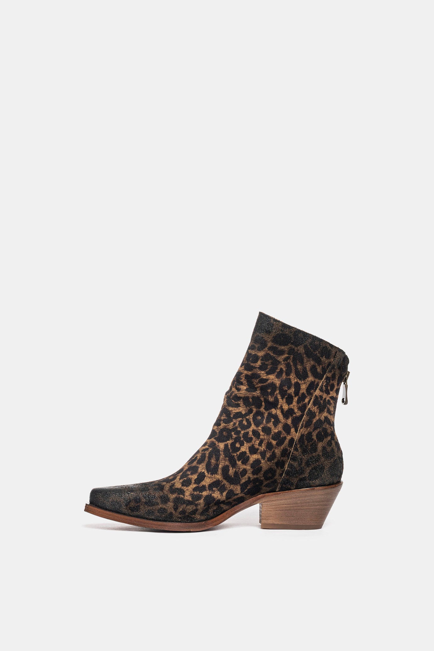 Tronchetti texani in camoscio stampato maculato.