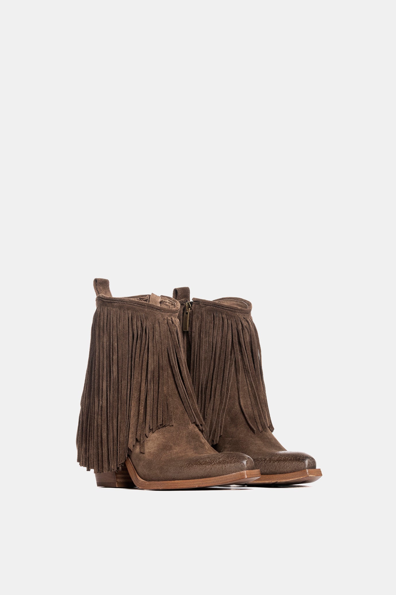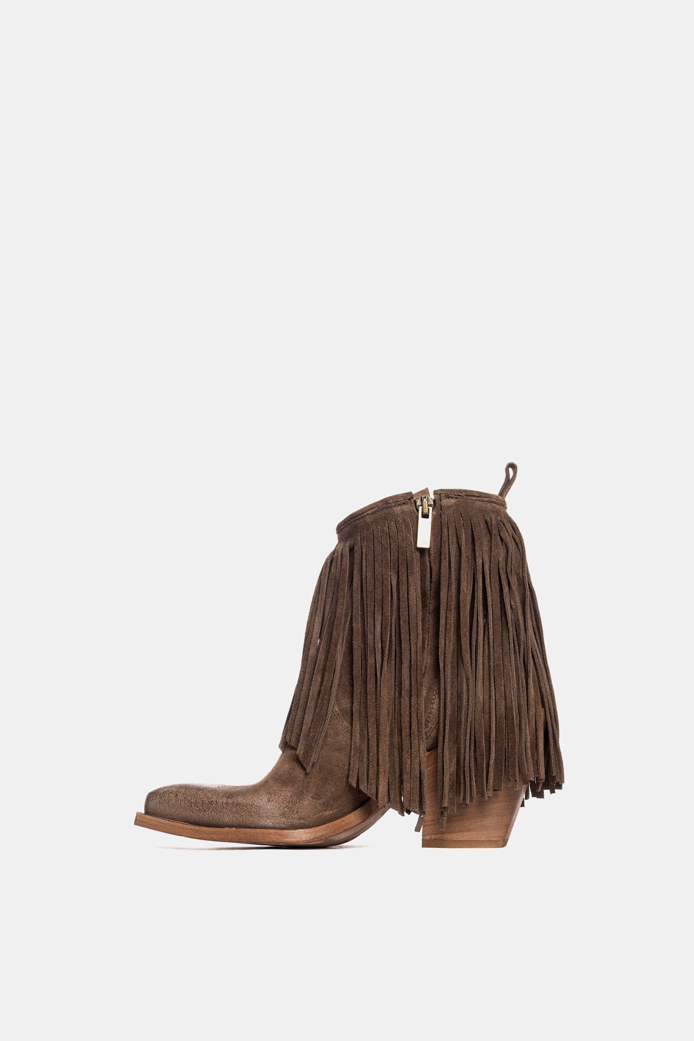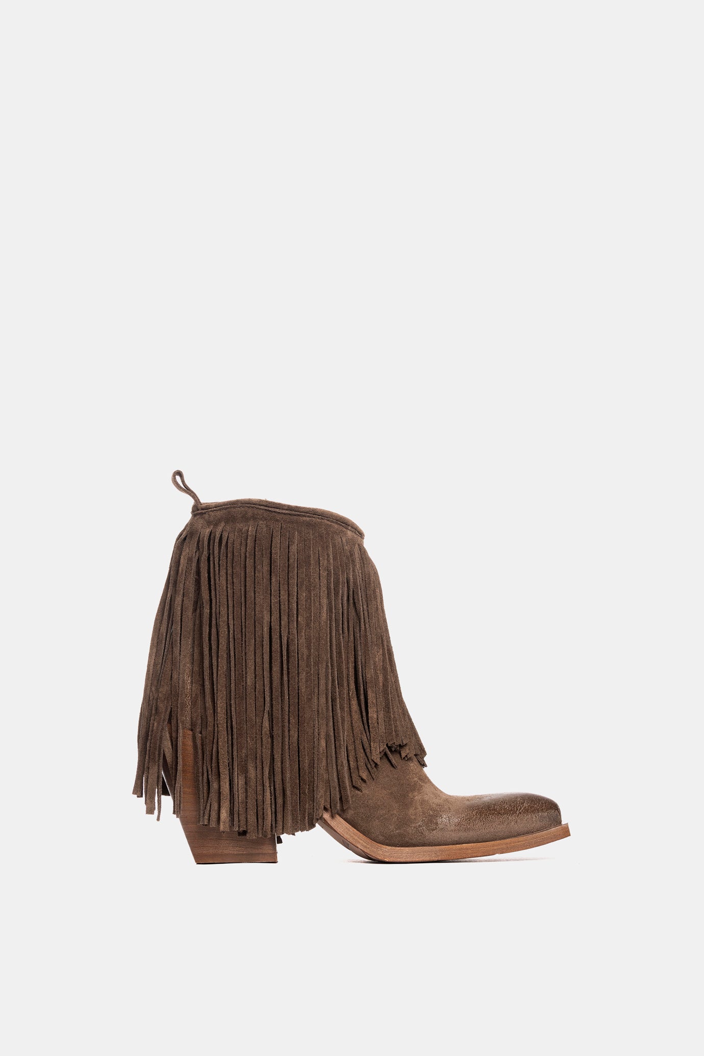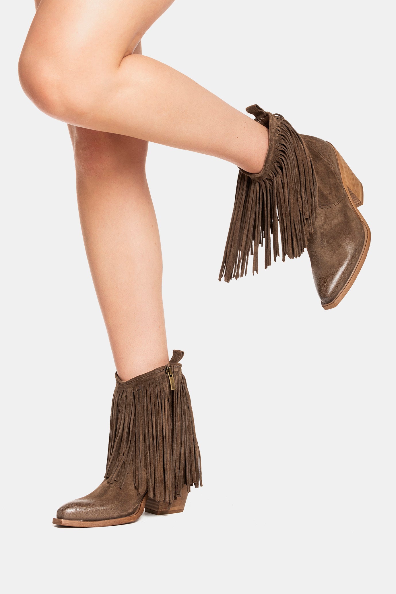 Tronchetti texano in camoscio mustang con frange