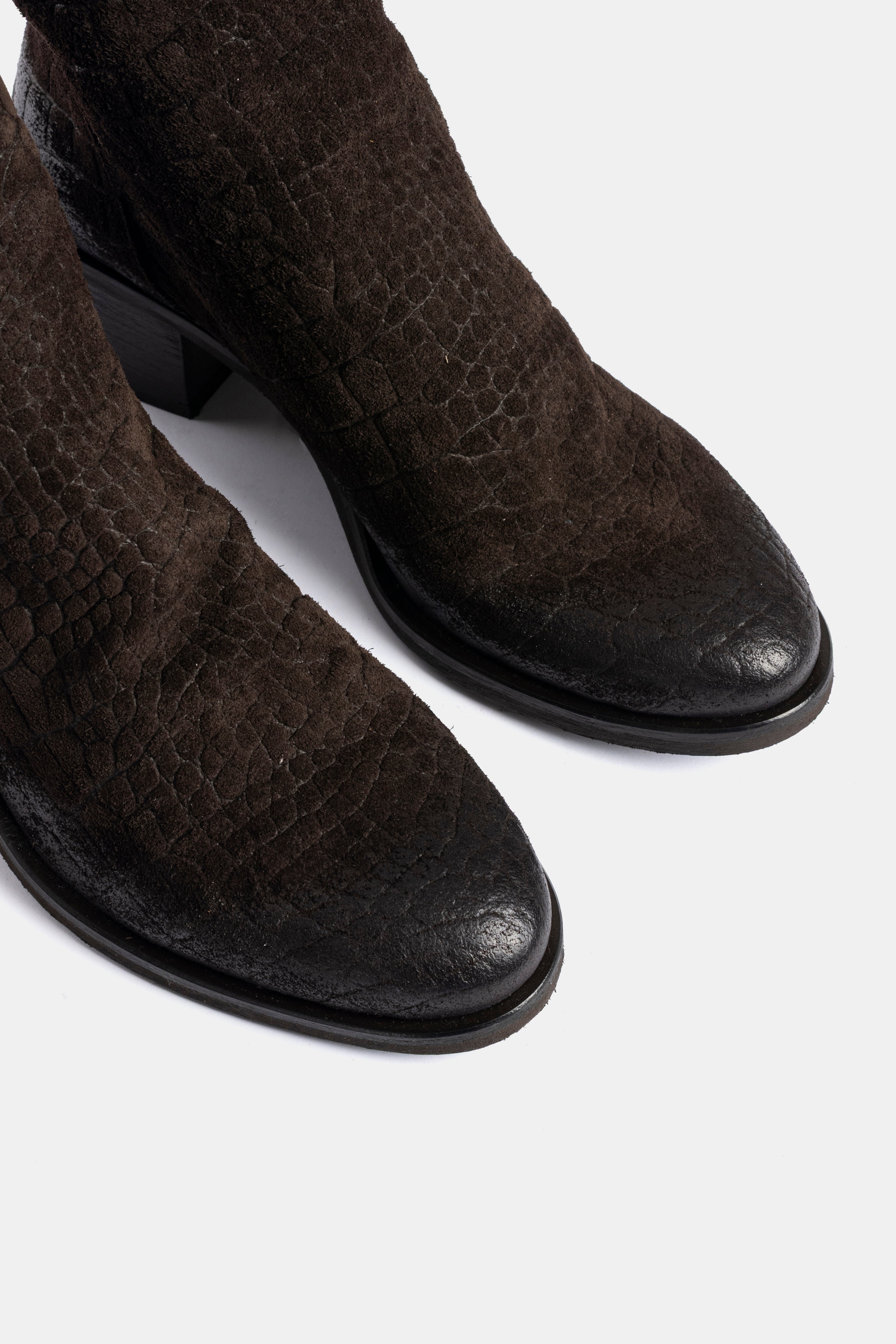 Tronchetti realizzati in camoscio cocco testa di moro.