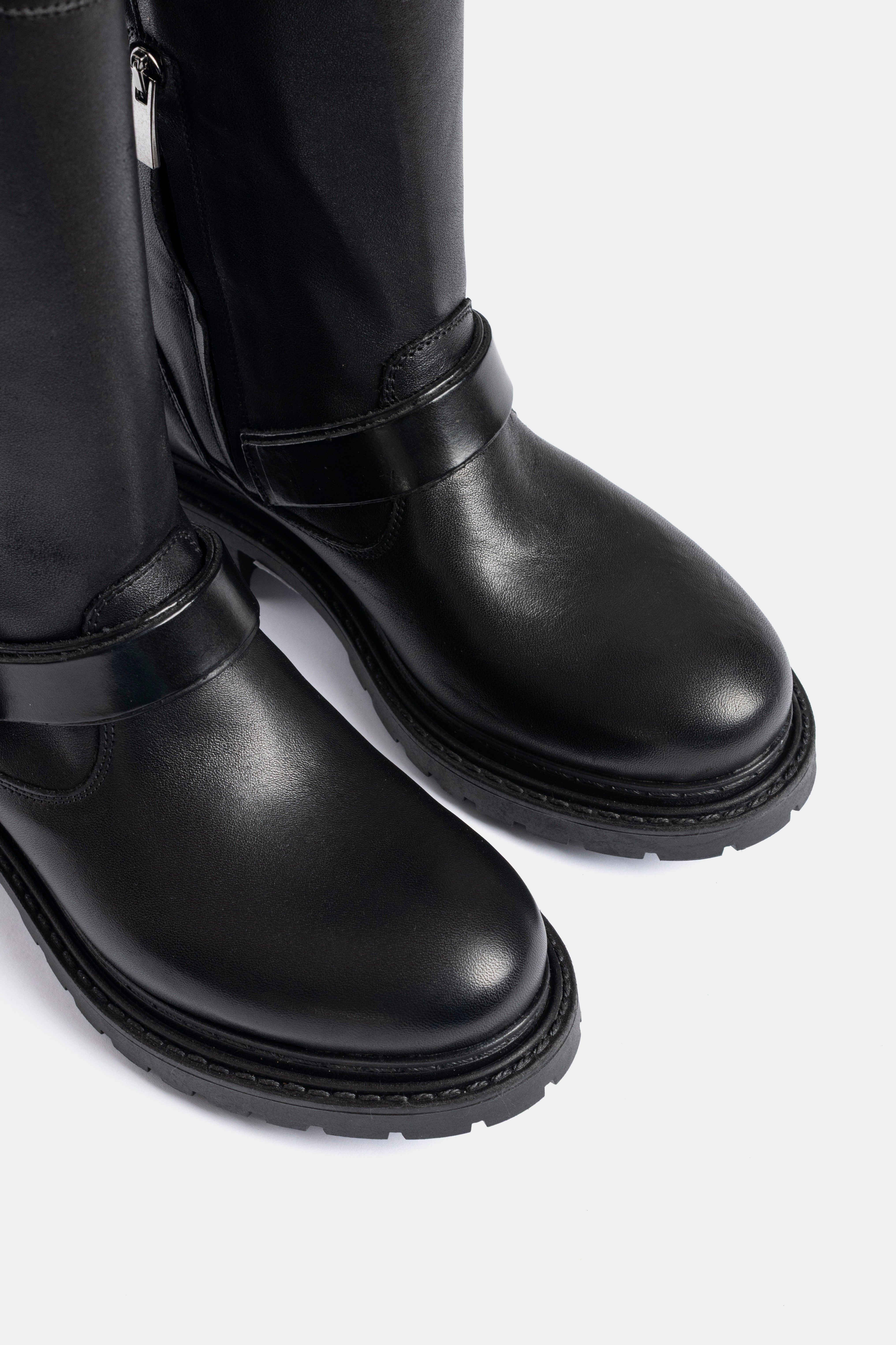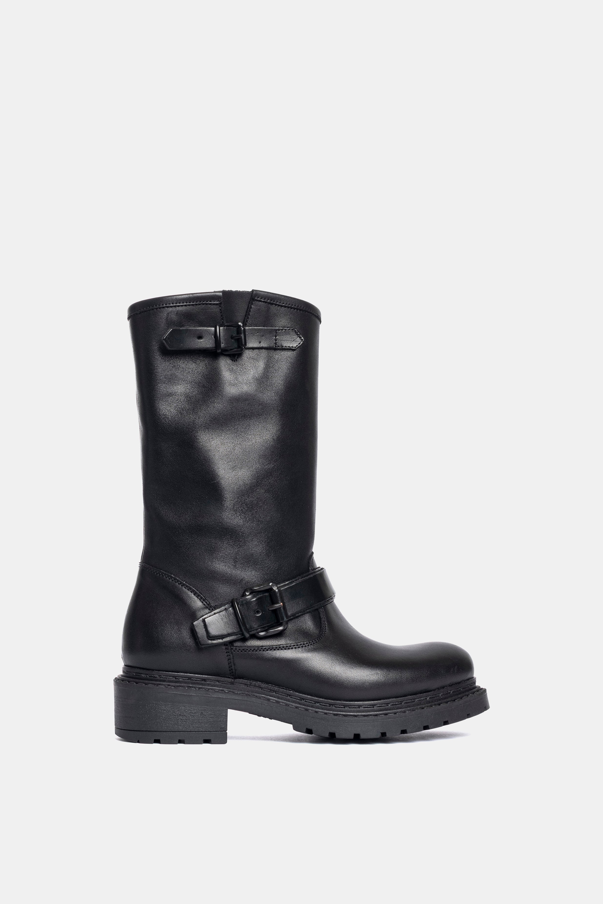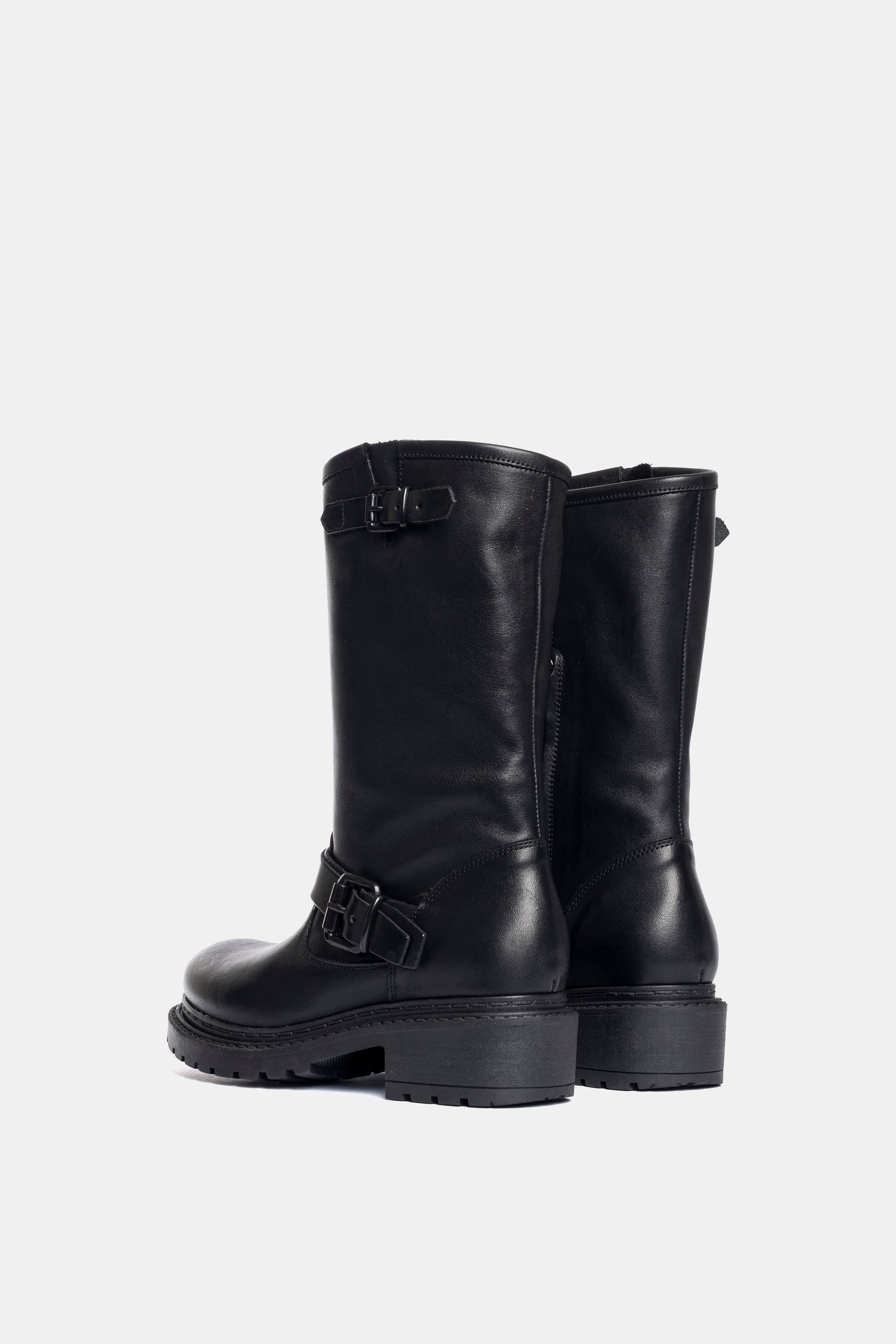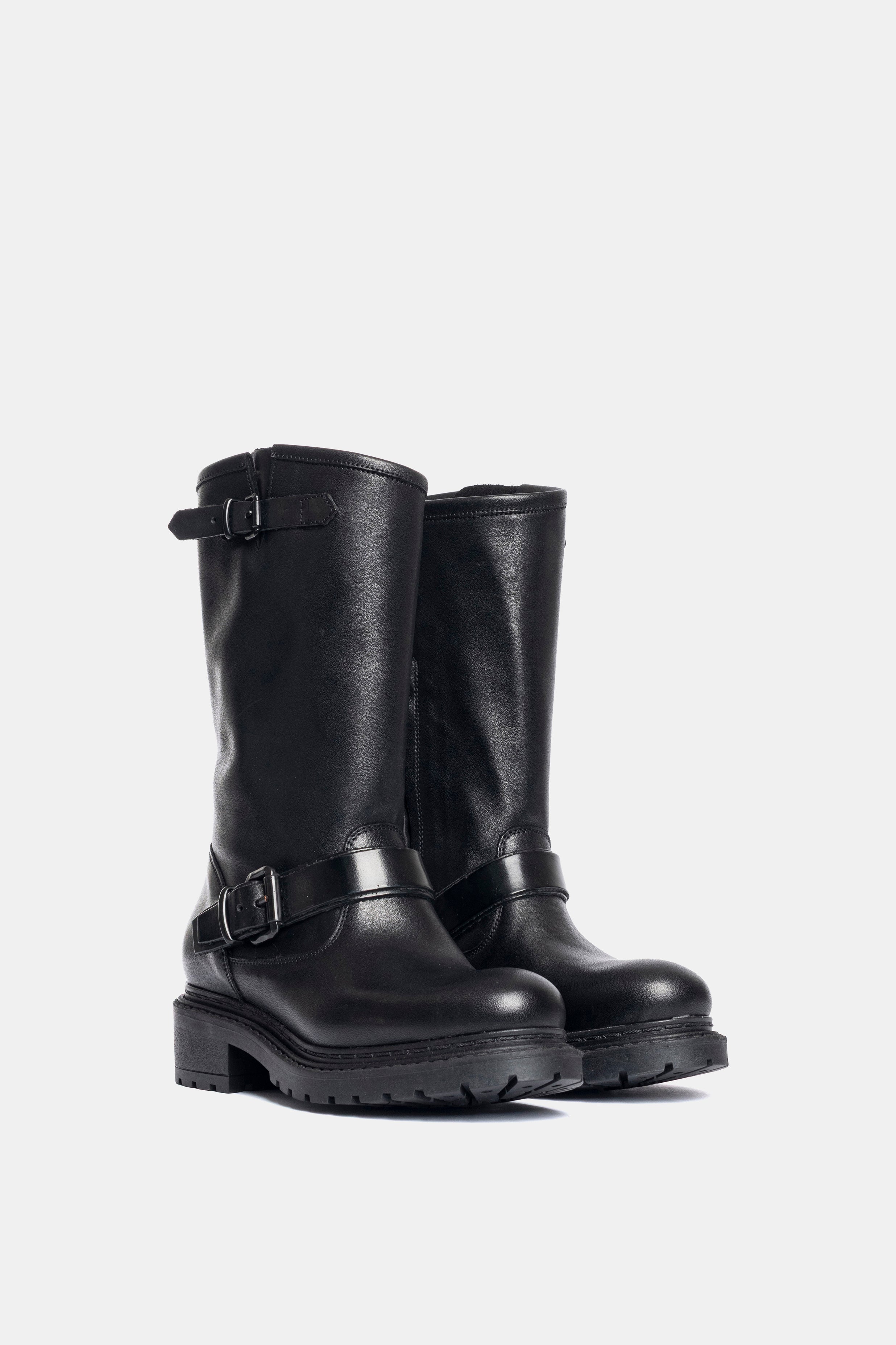 Stivali biker in vitello nero.