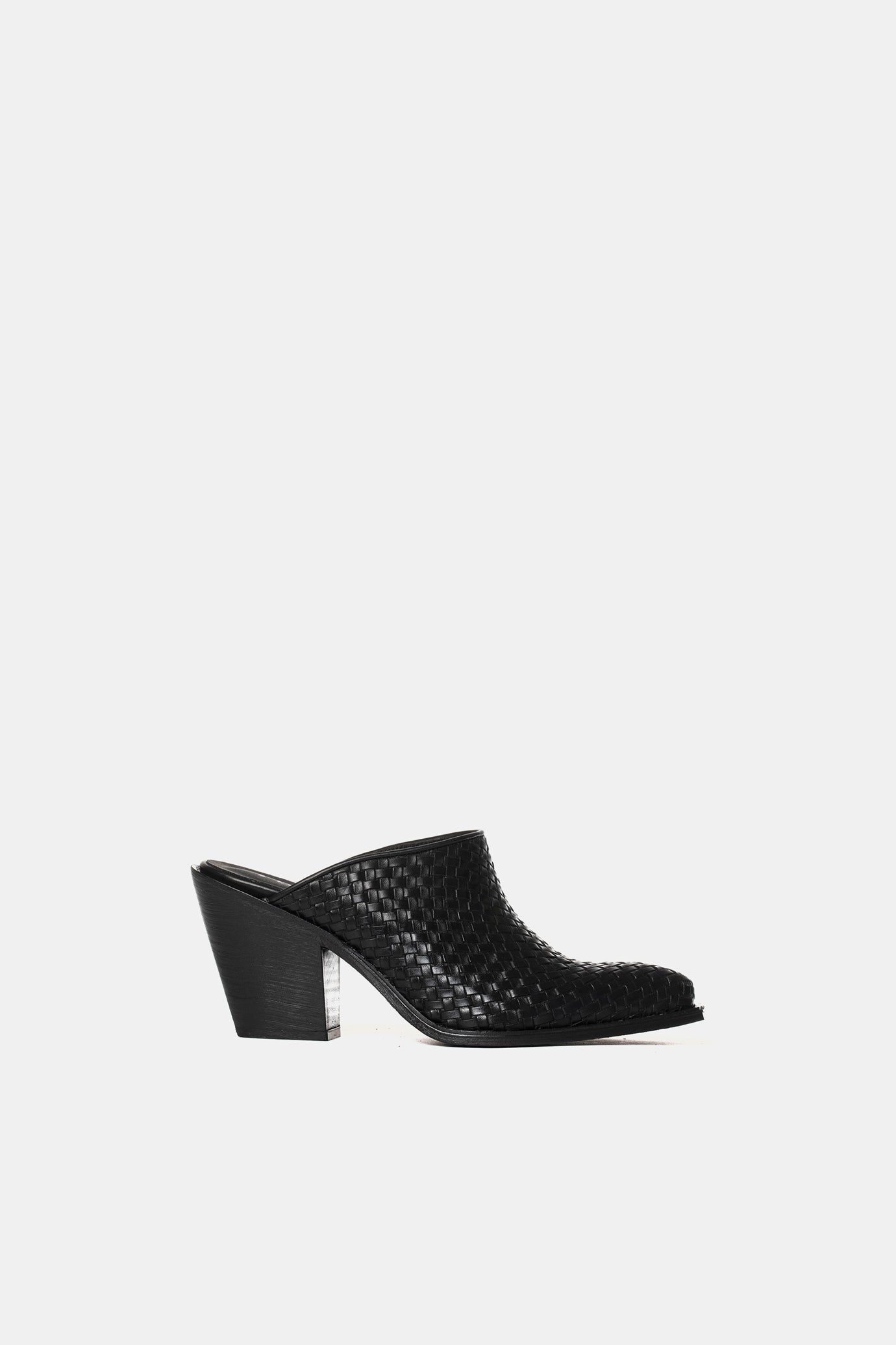 Leather and fabric clogs made with hand-brushed weave Made in Italy