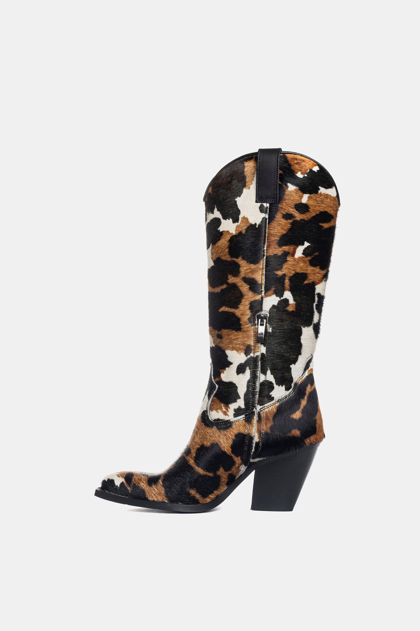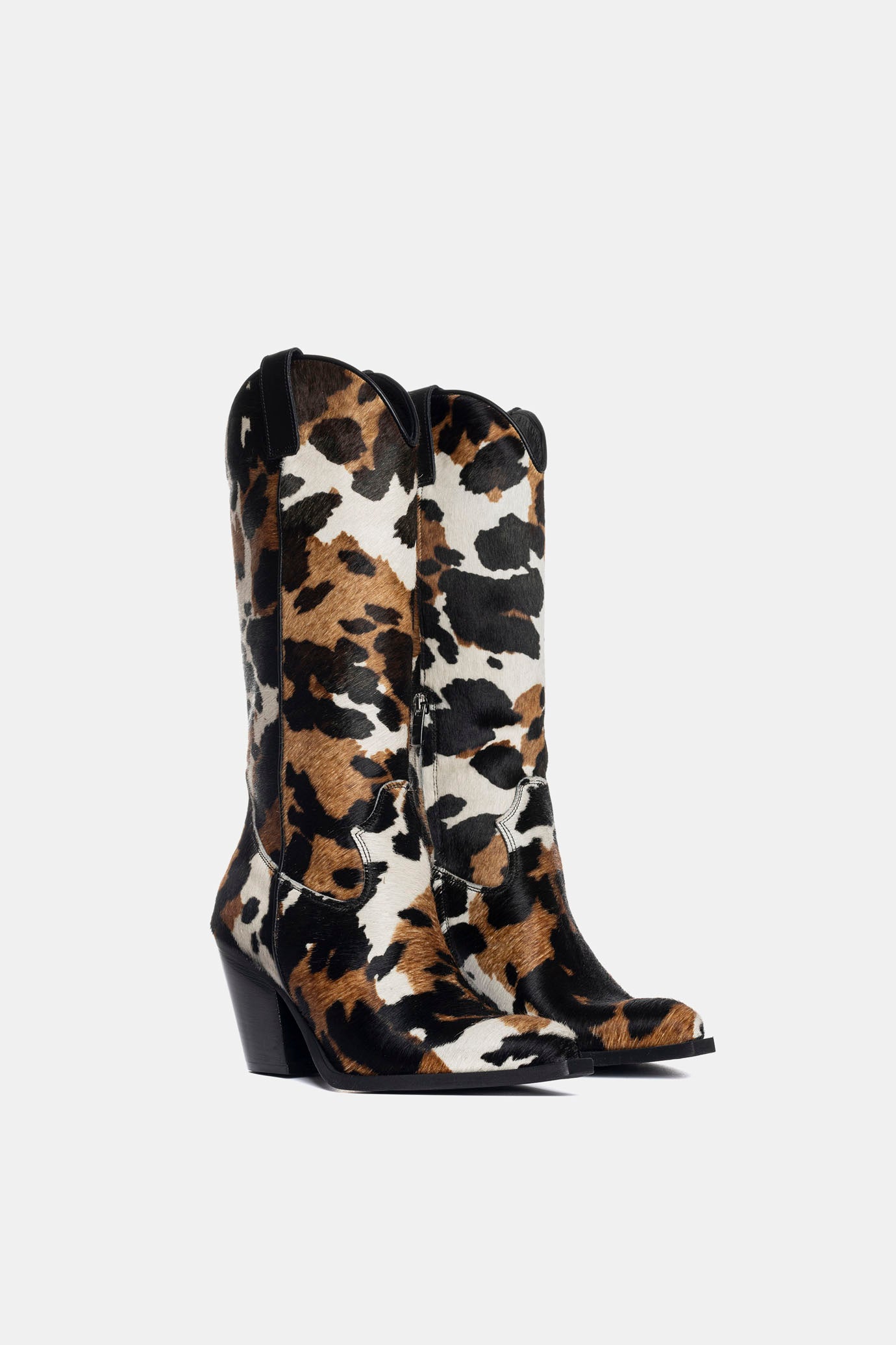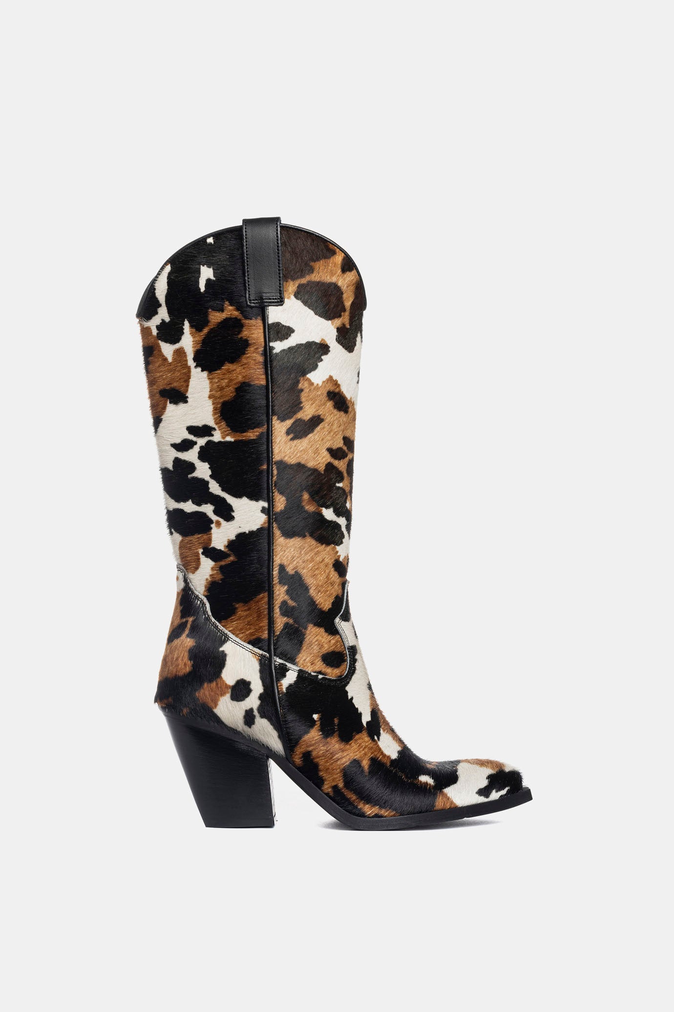 Ponyskin cowboy boots with cow print
