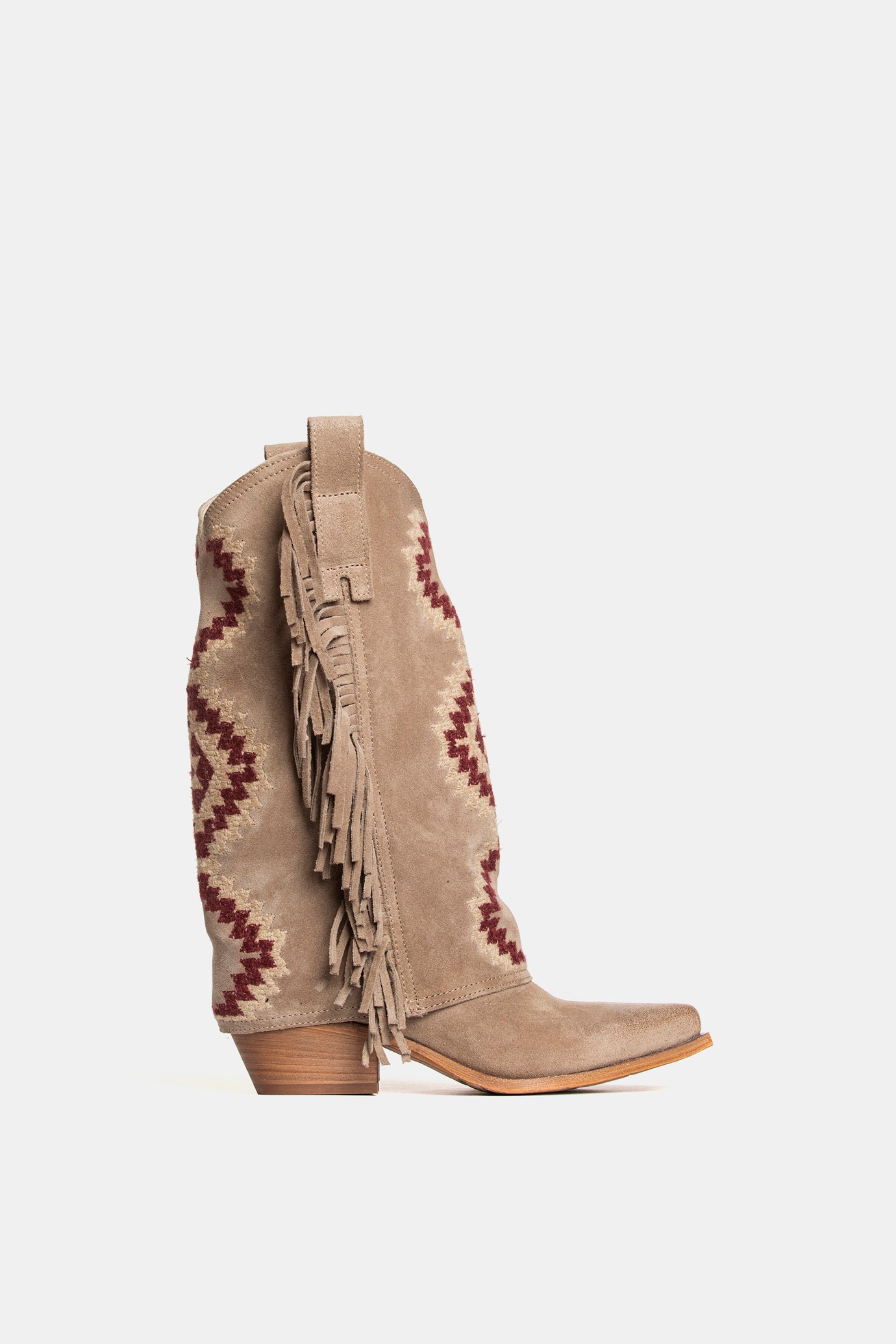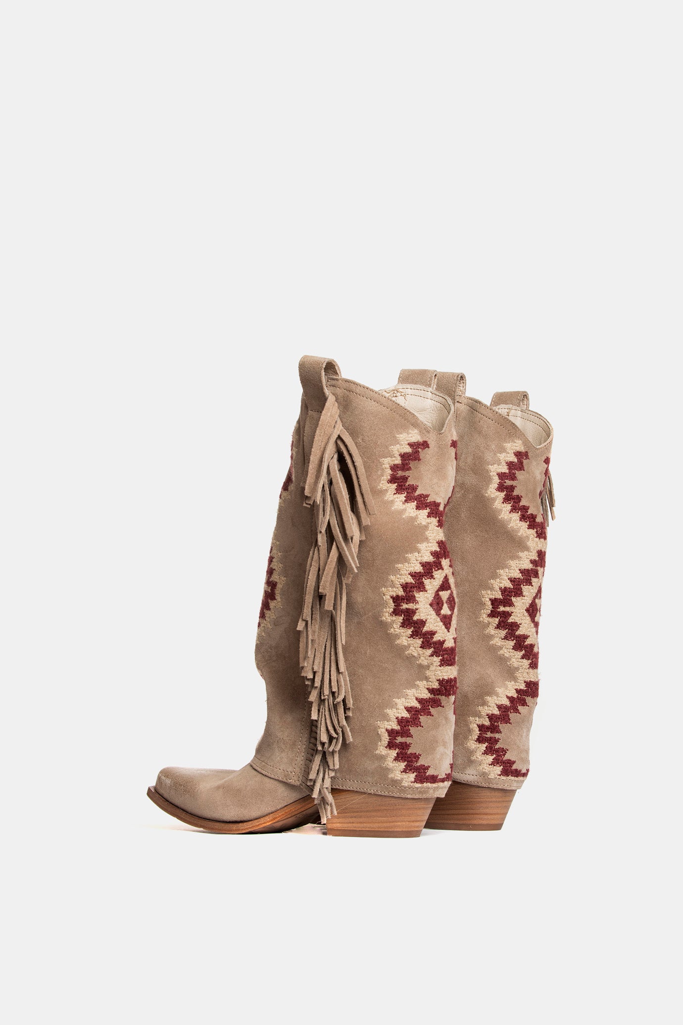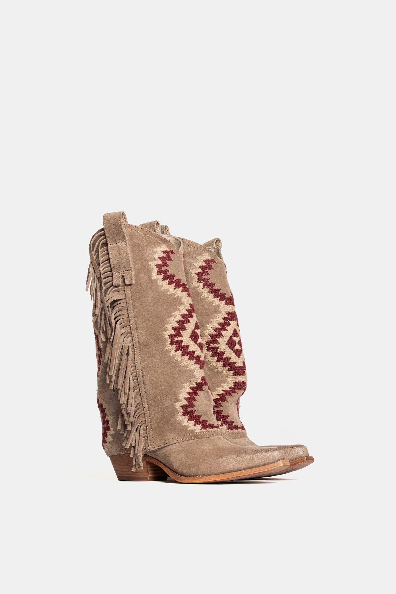 Texan boots in deerskin suede with ethnic embroidery and fringes