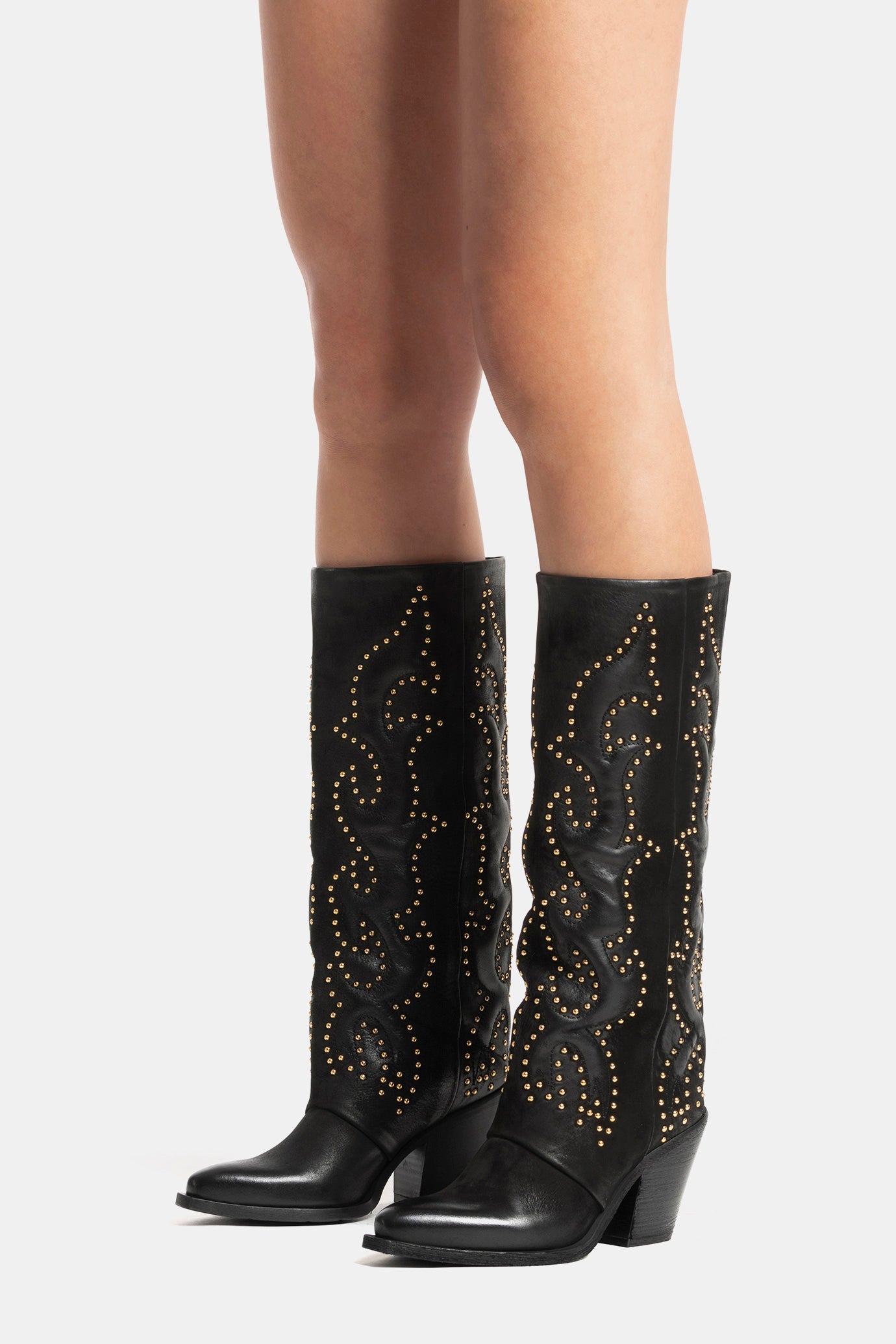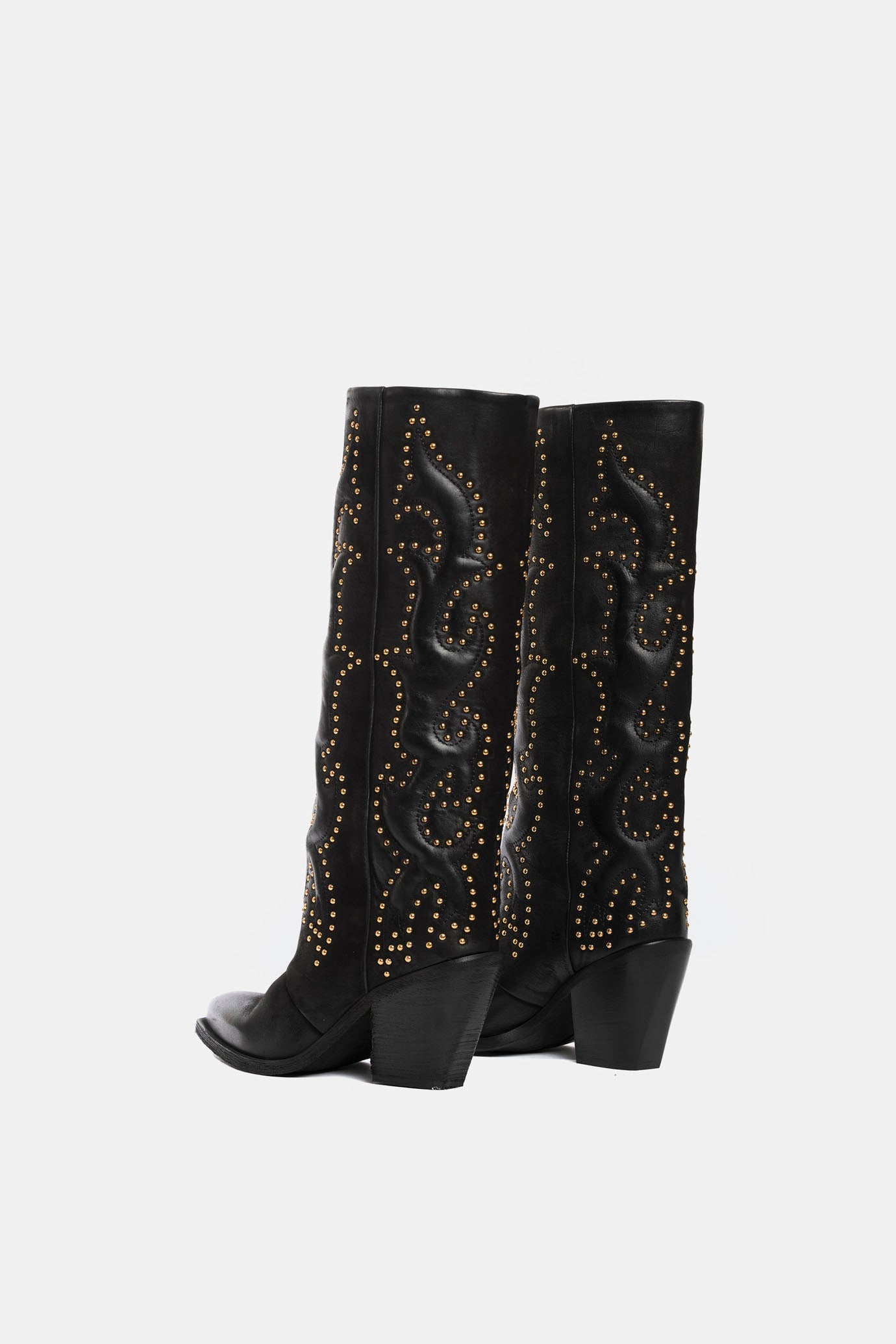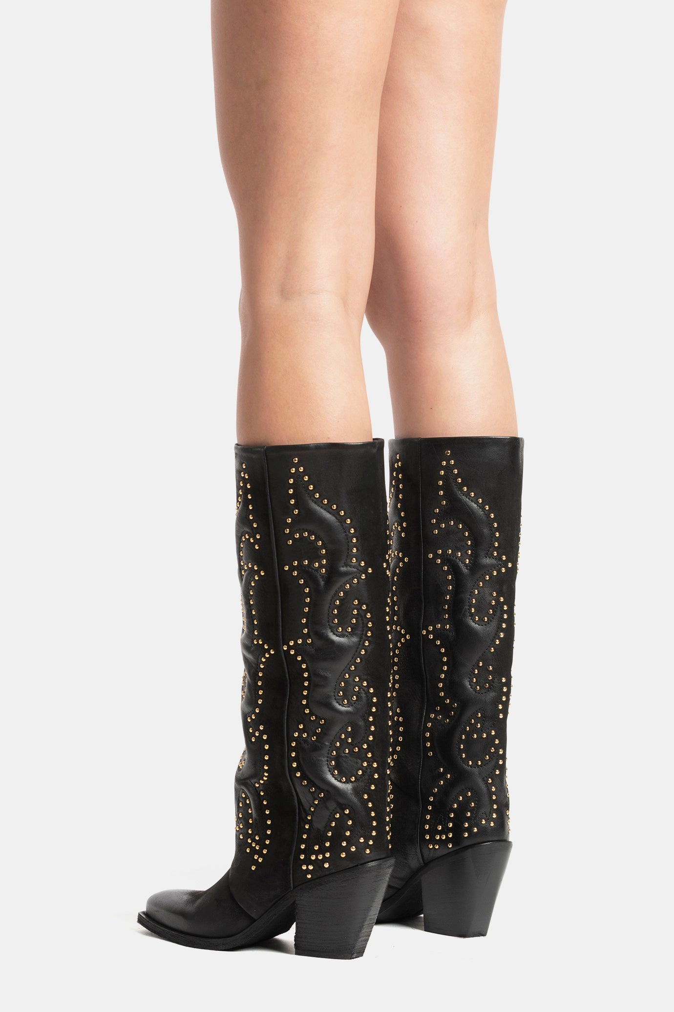 Black nubuck Texan boots with gold embroidery and studs