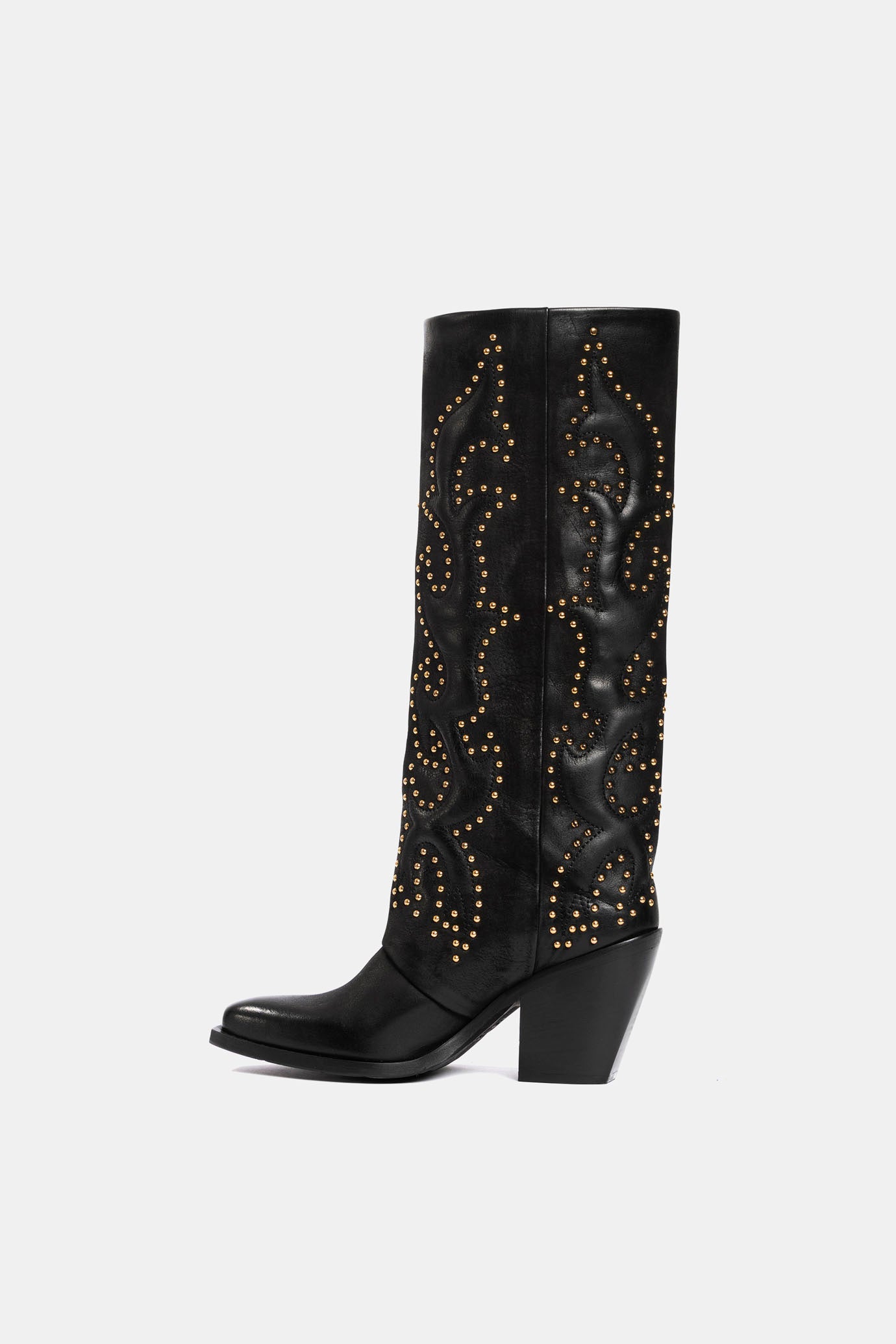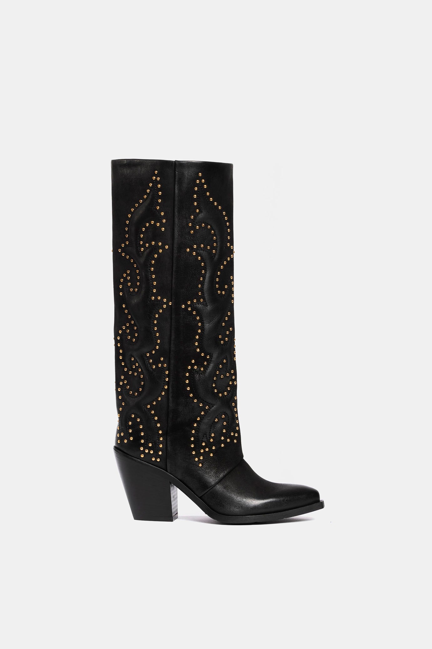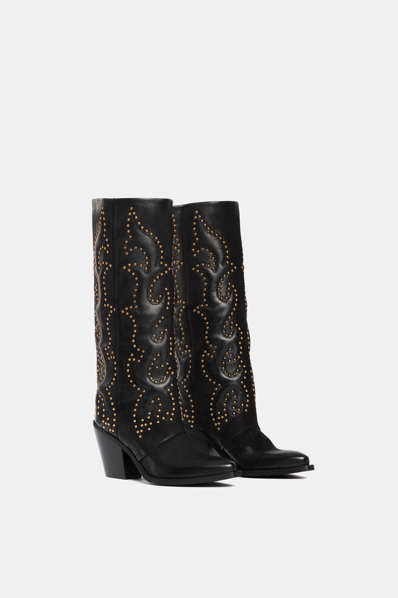 Black nubuck Texan boots with gold embroidery and studs