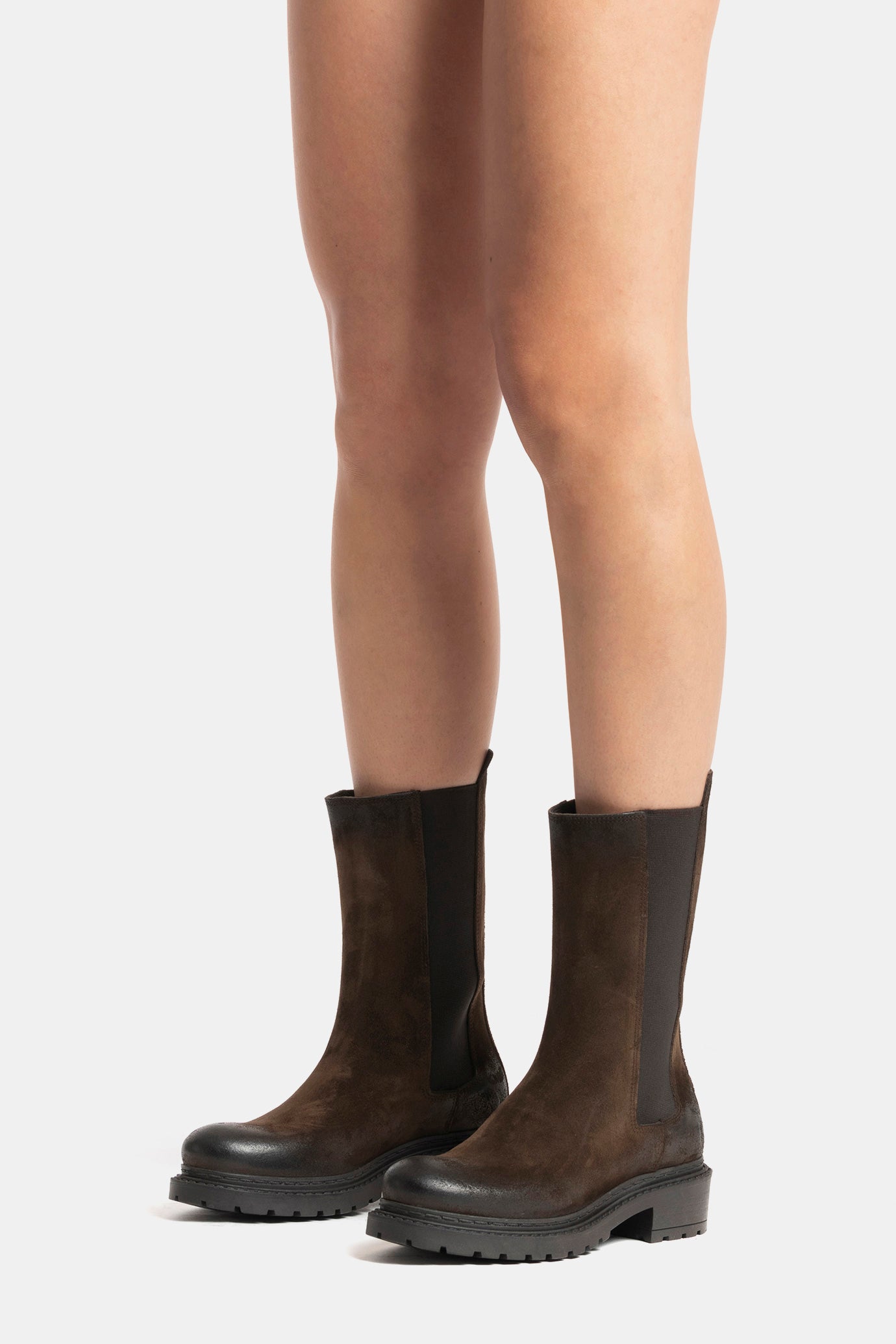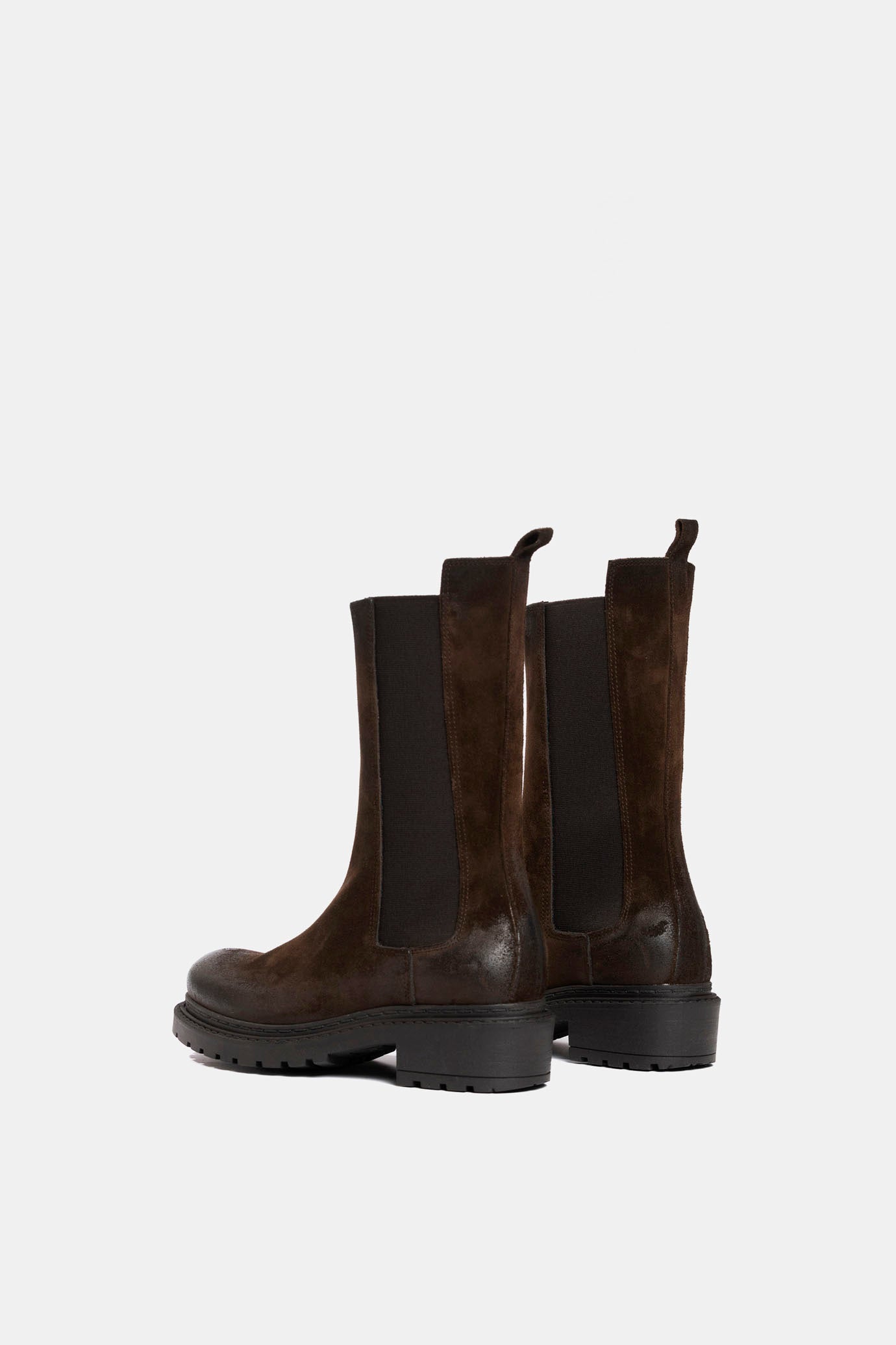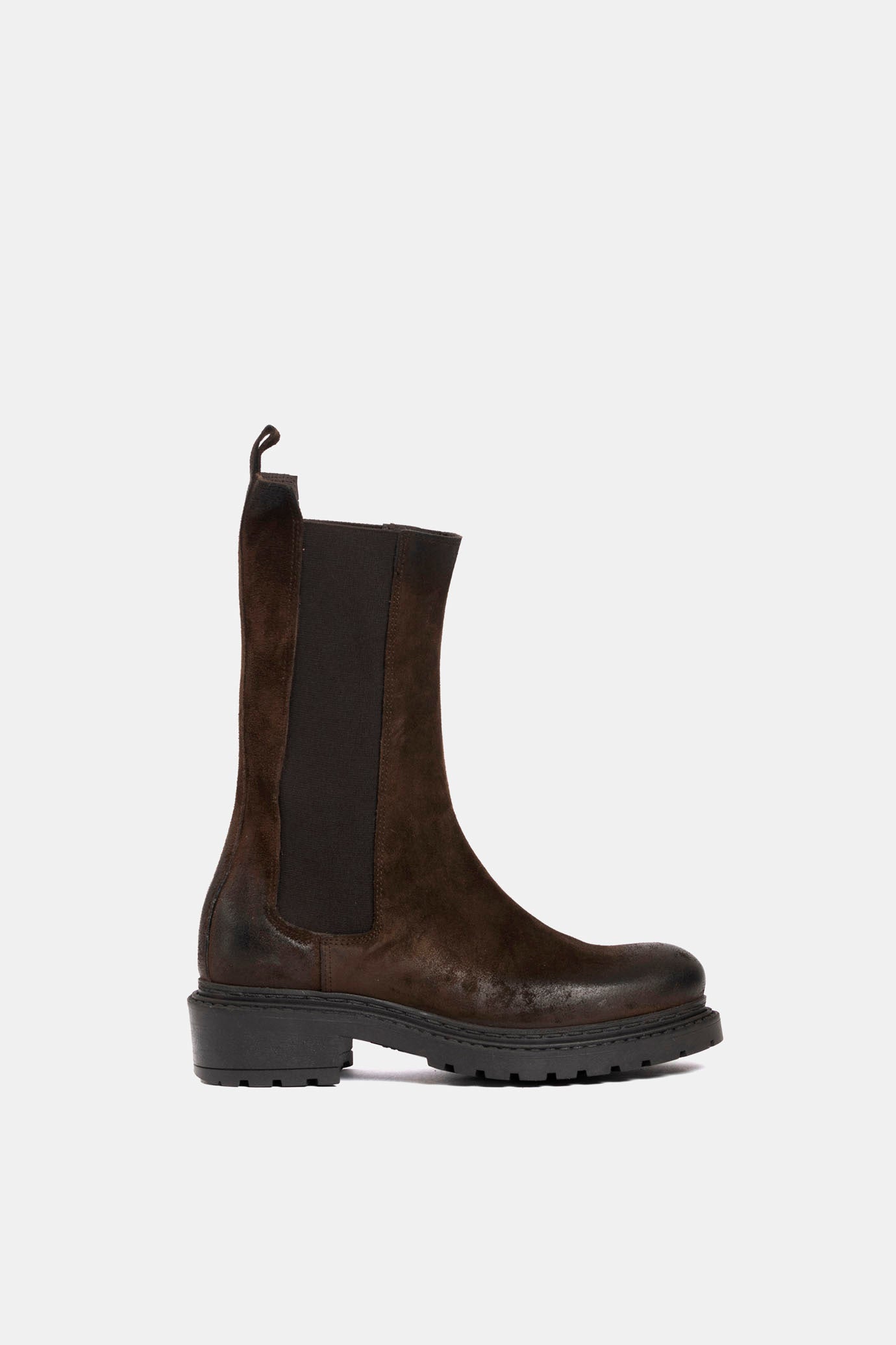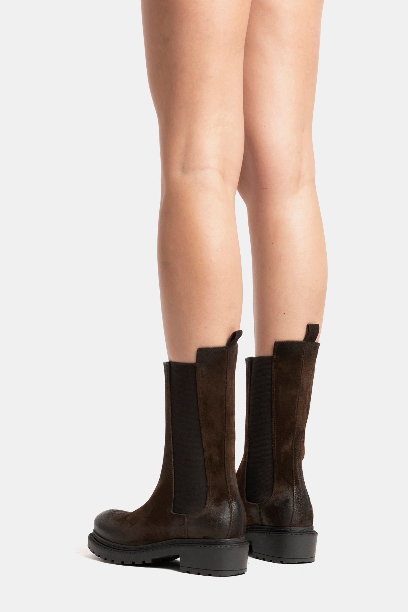 Ankle boots, Beatles style, in hand-brushed dark brown suede.