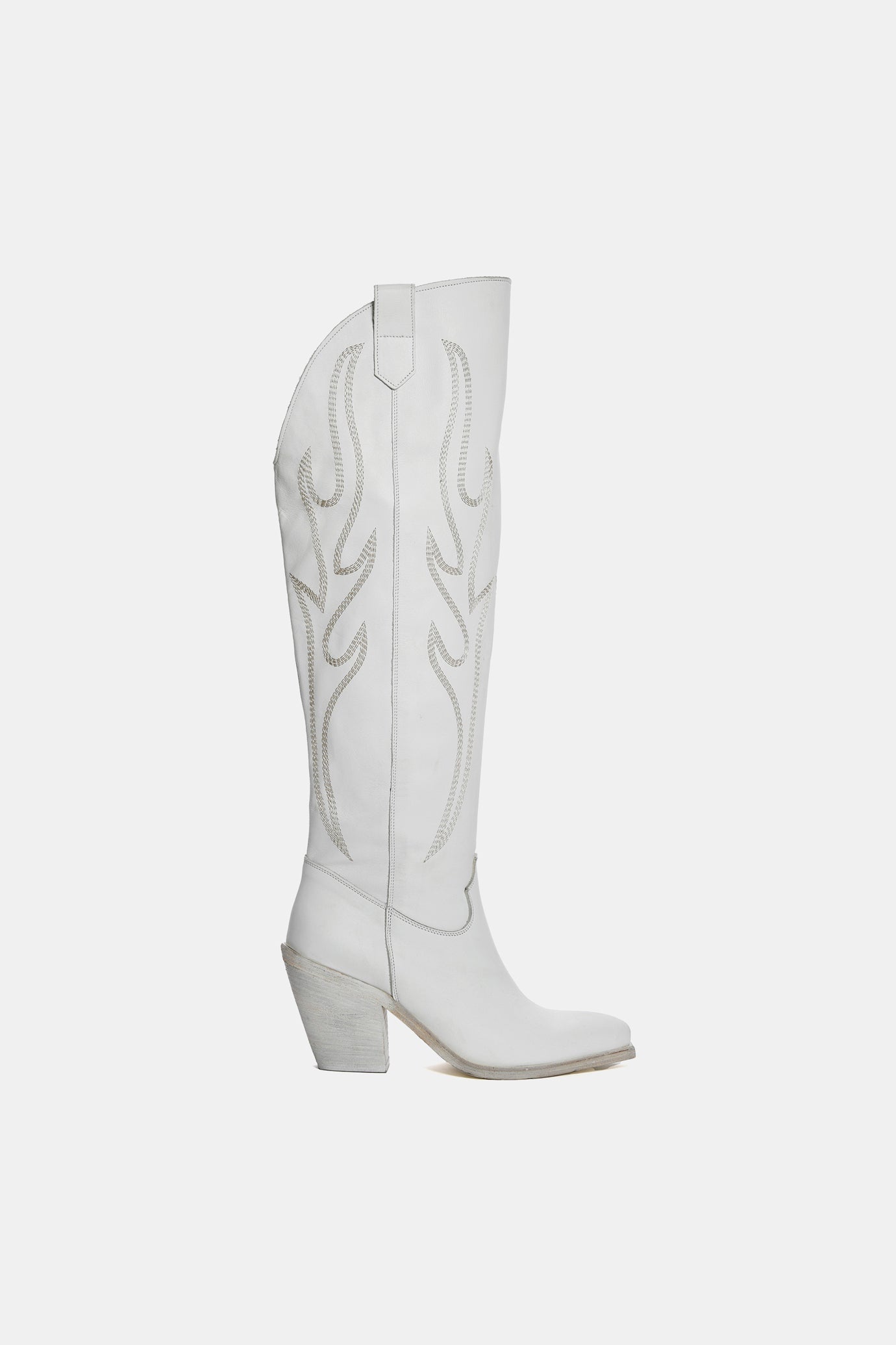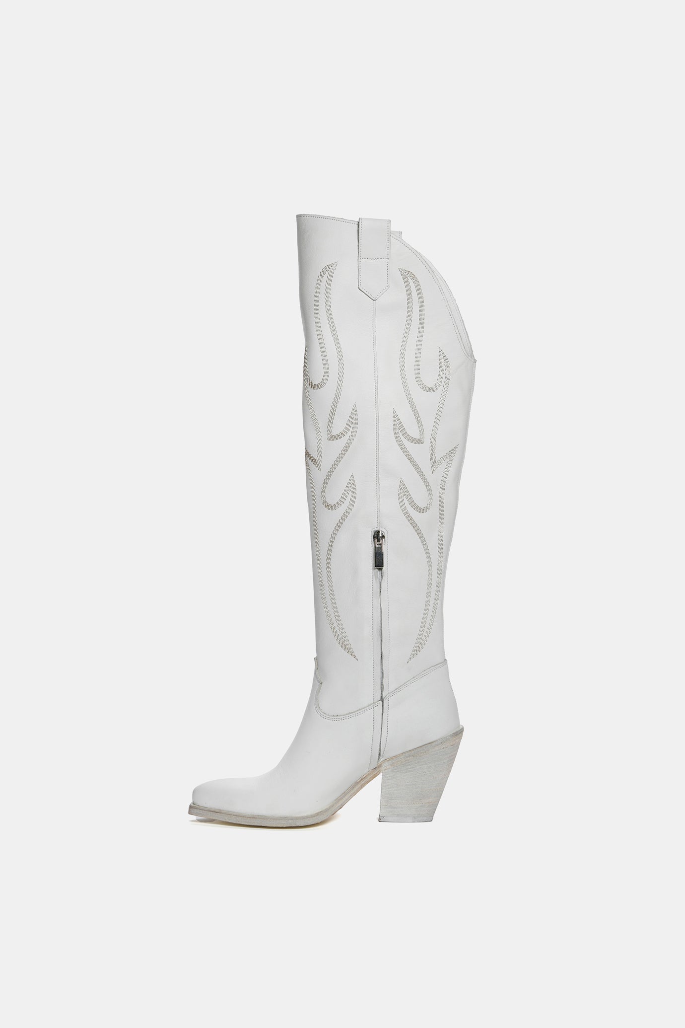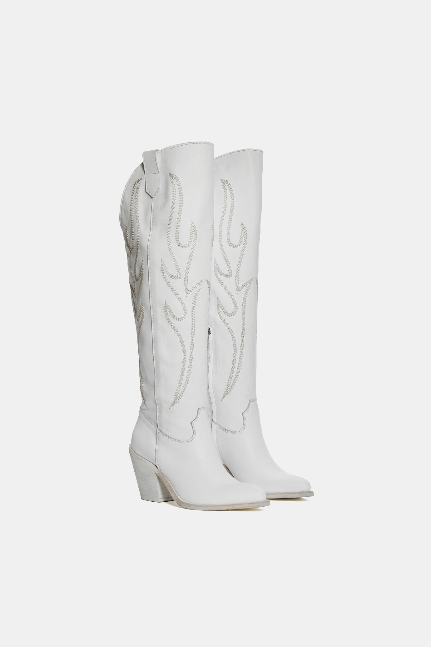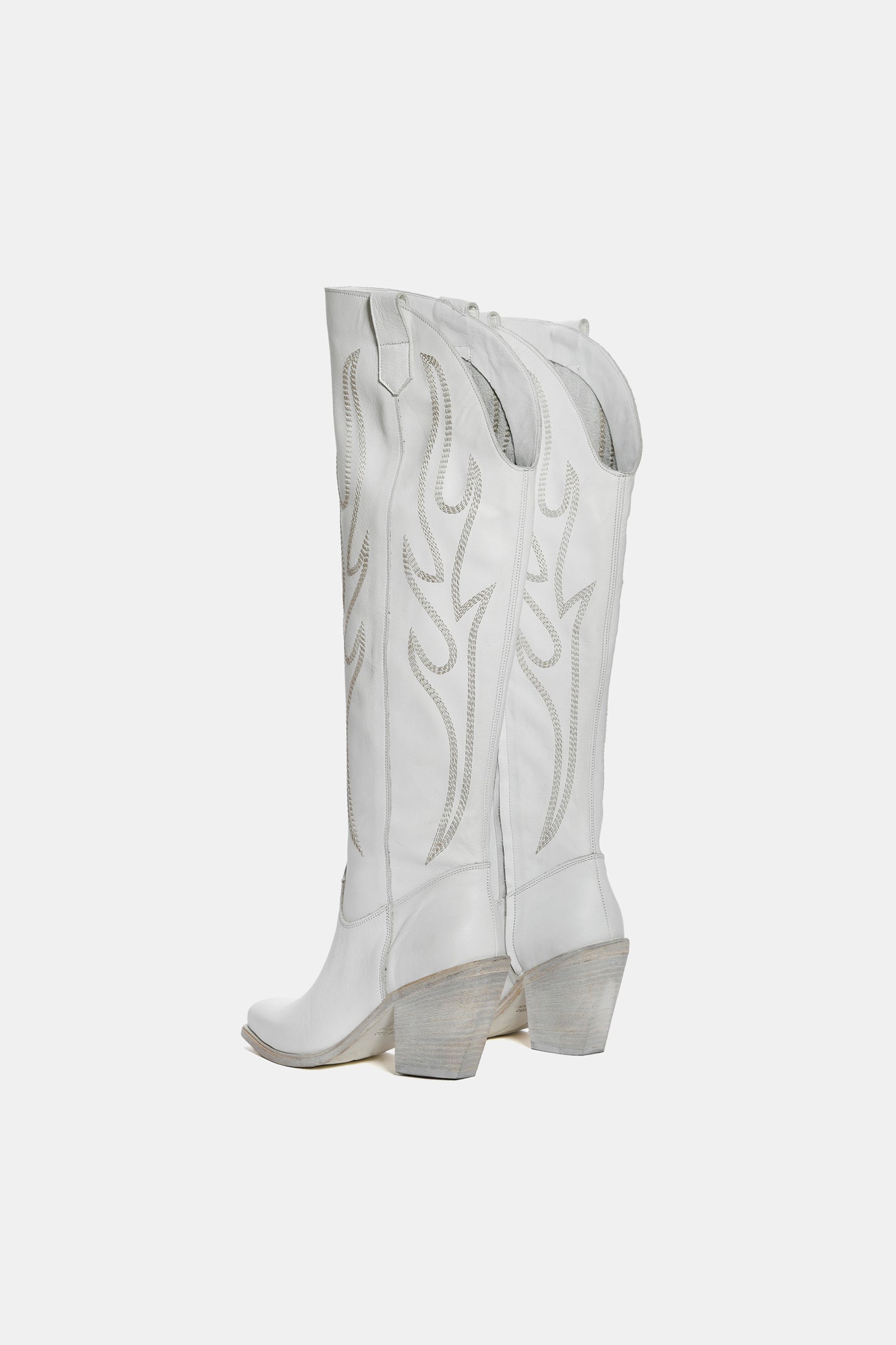 White calf high cowboy boots with embroidery XD758
