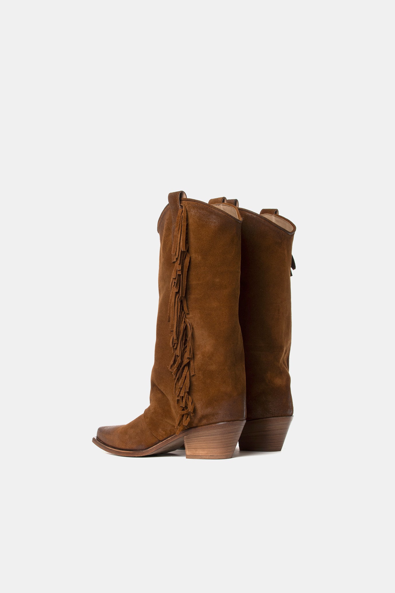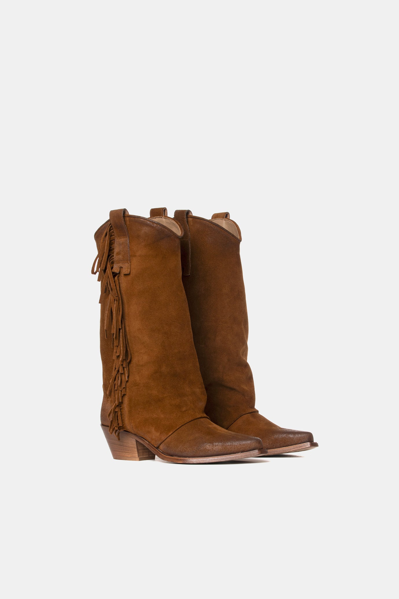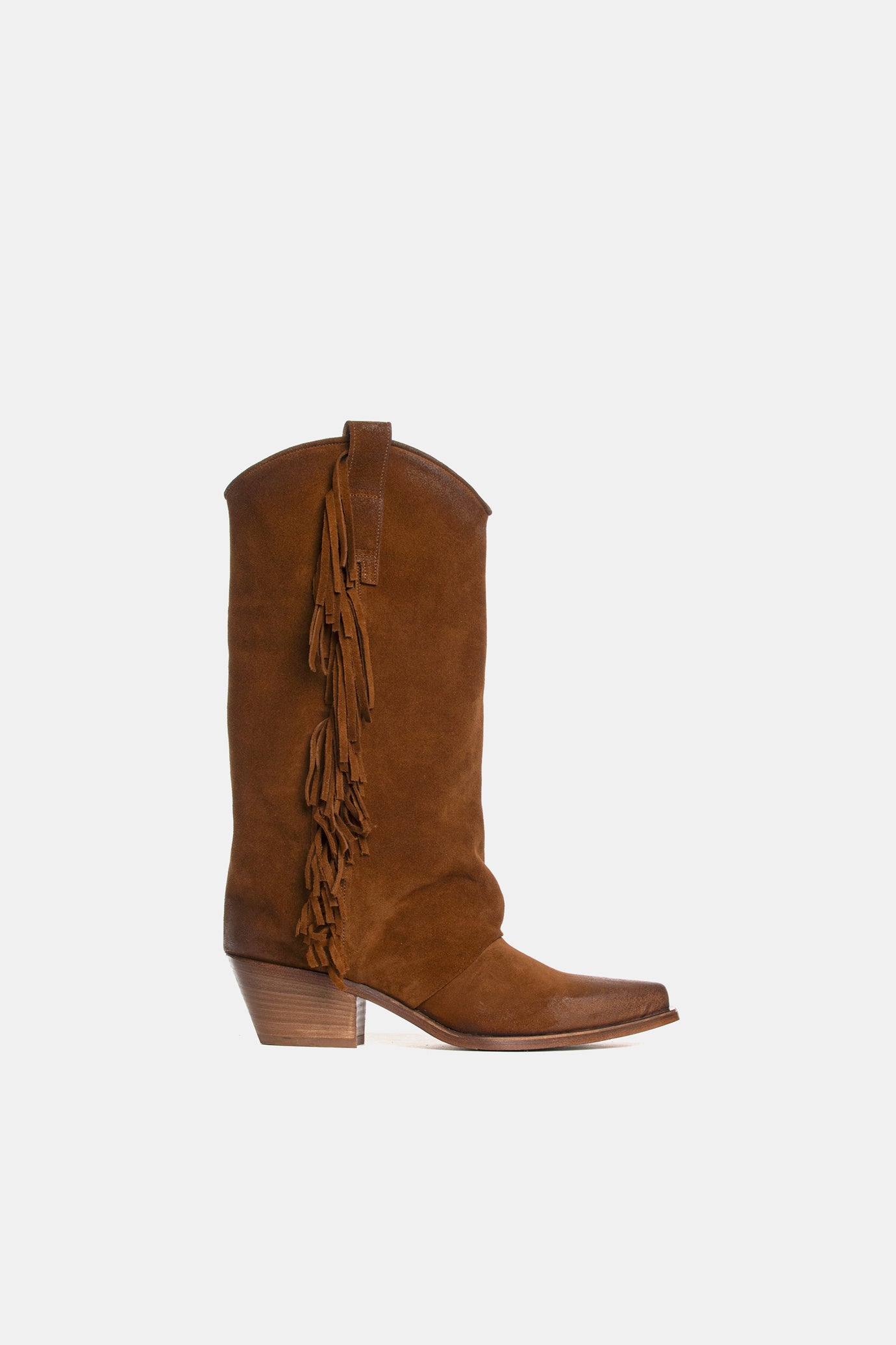 Texan boots made of very soft suede with side fringes