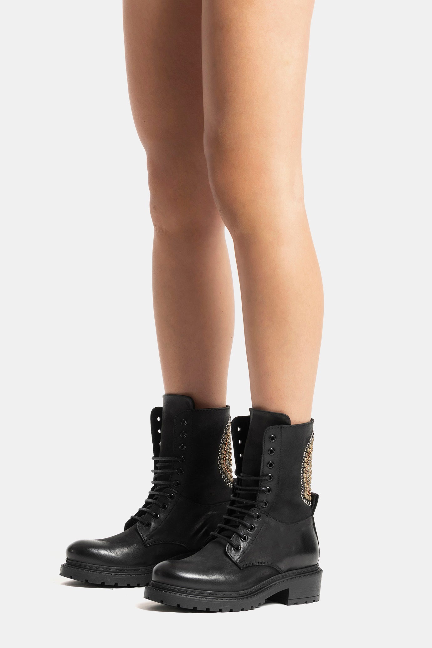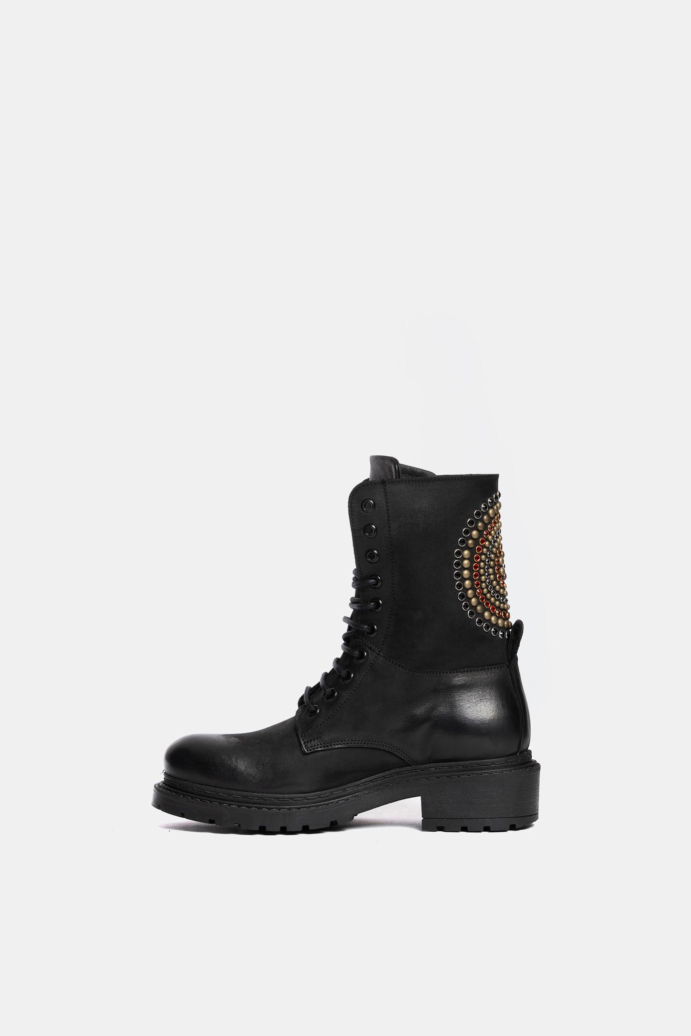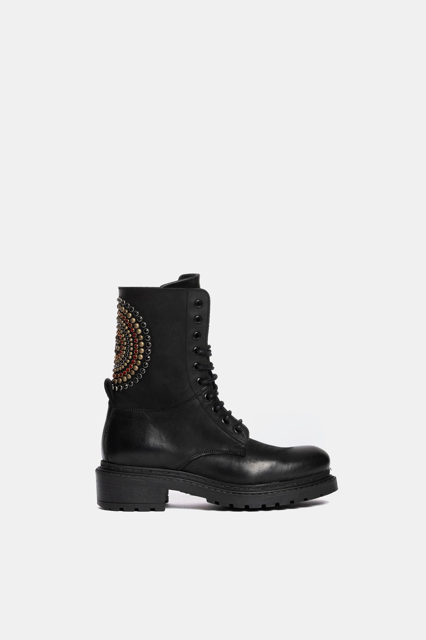 Black nubuck amphibians with coloured stone applications