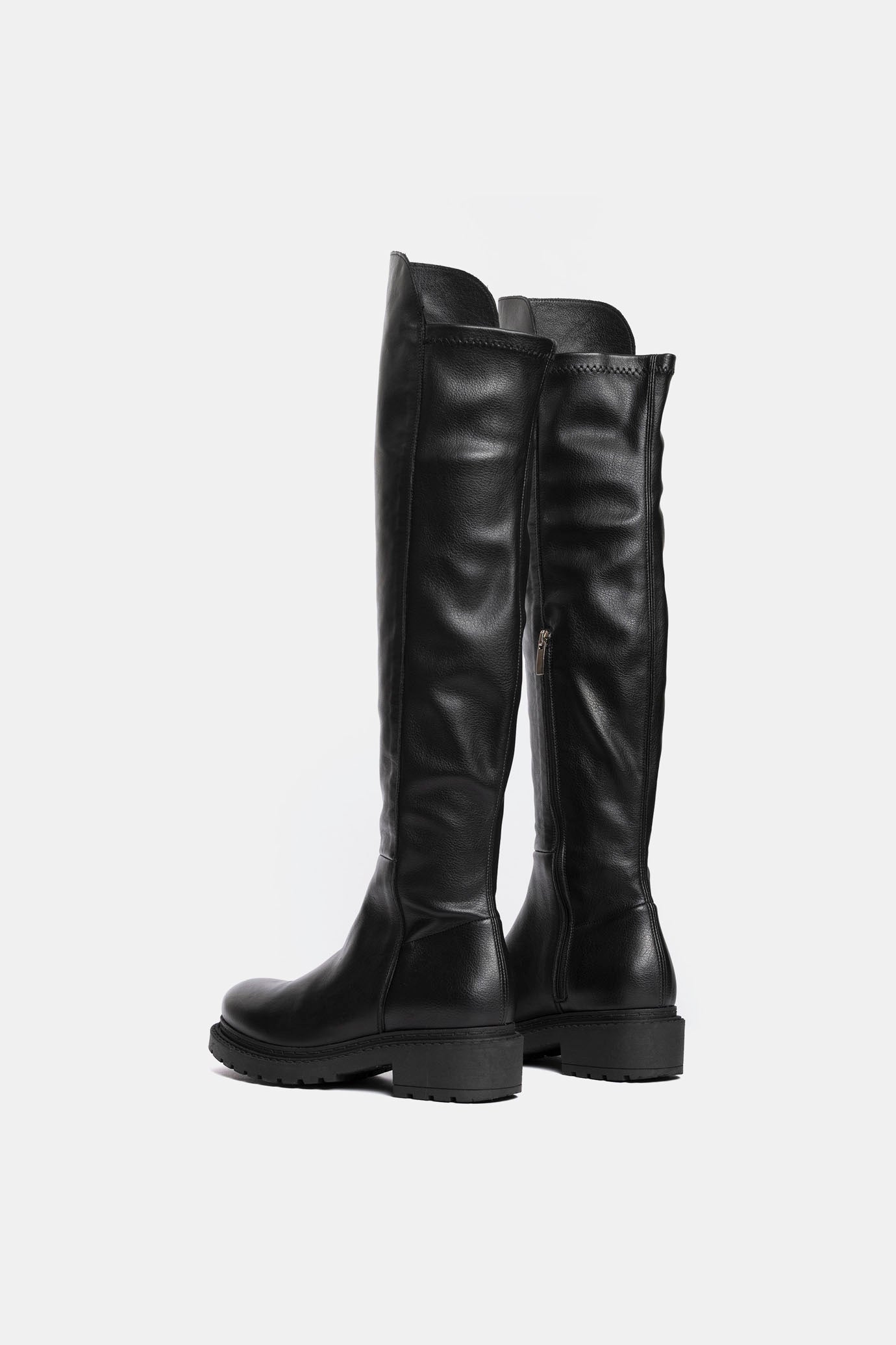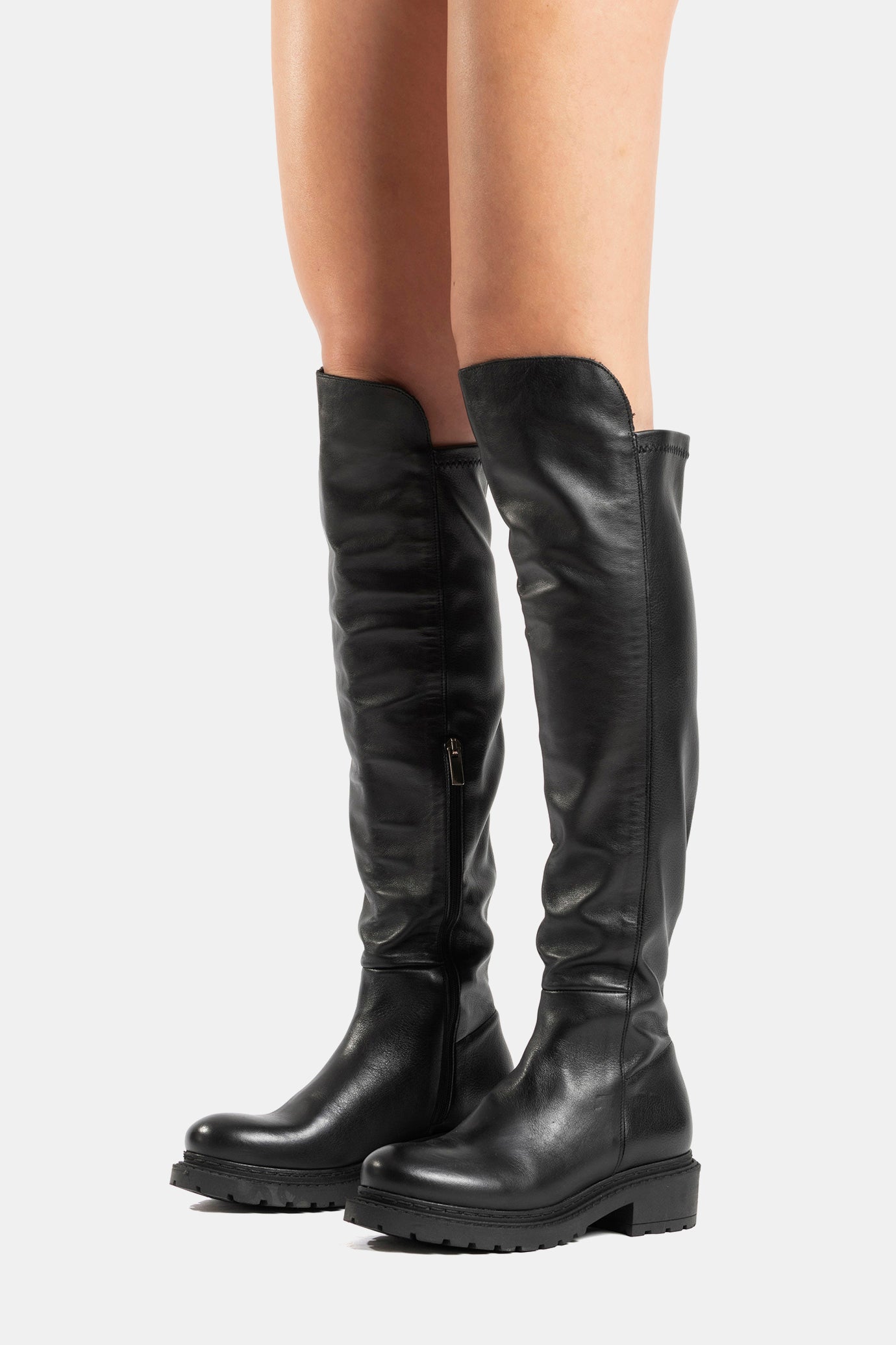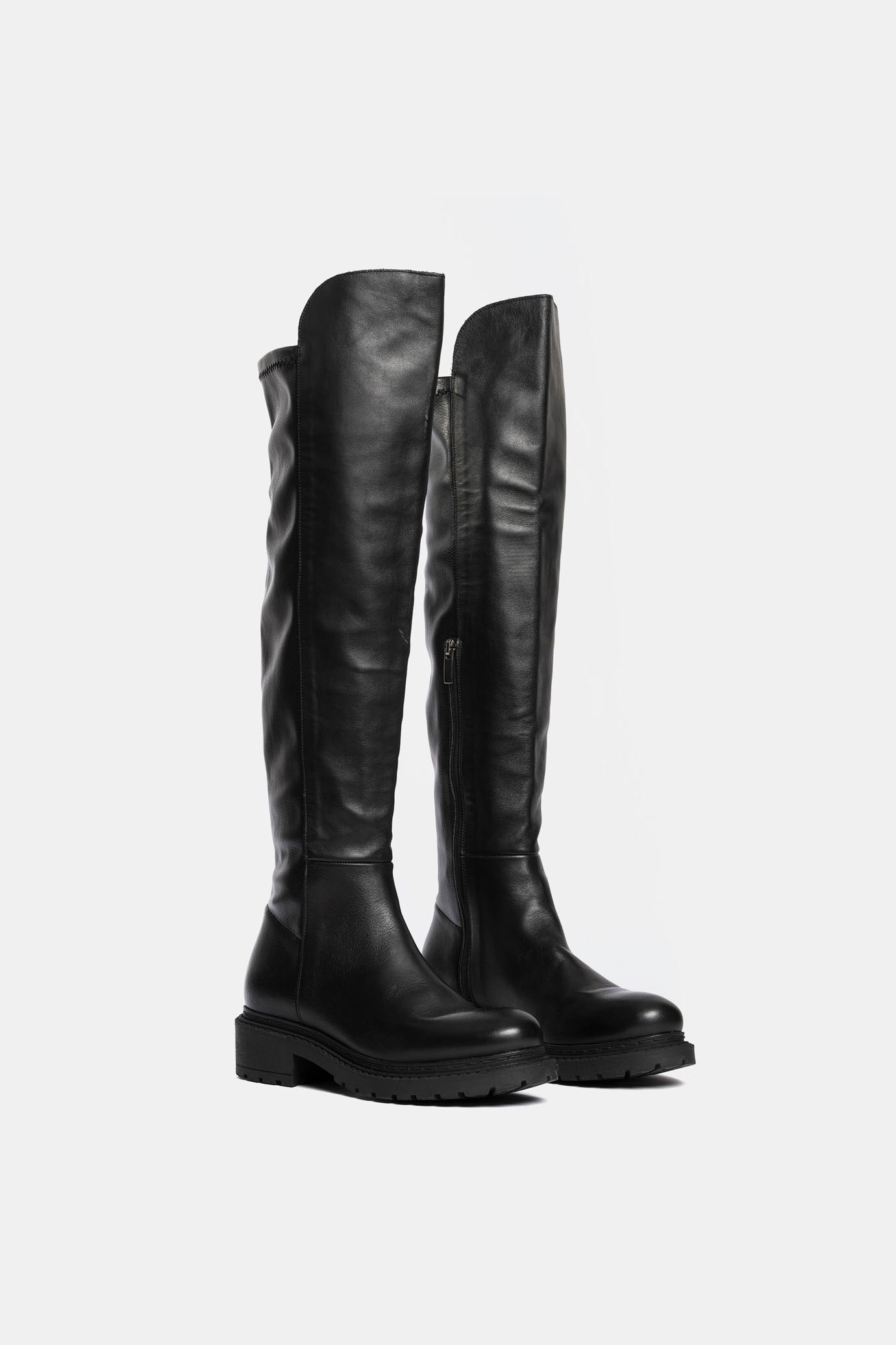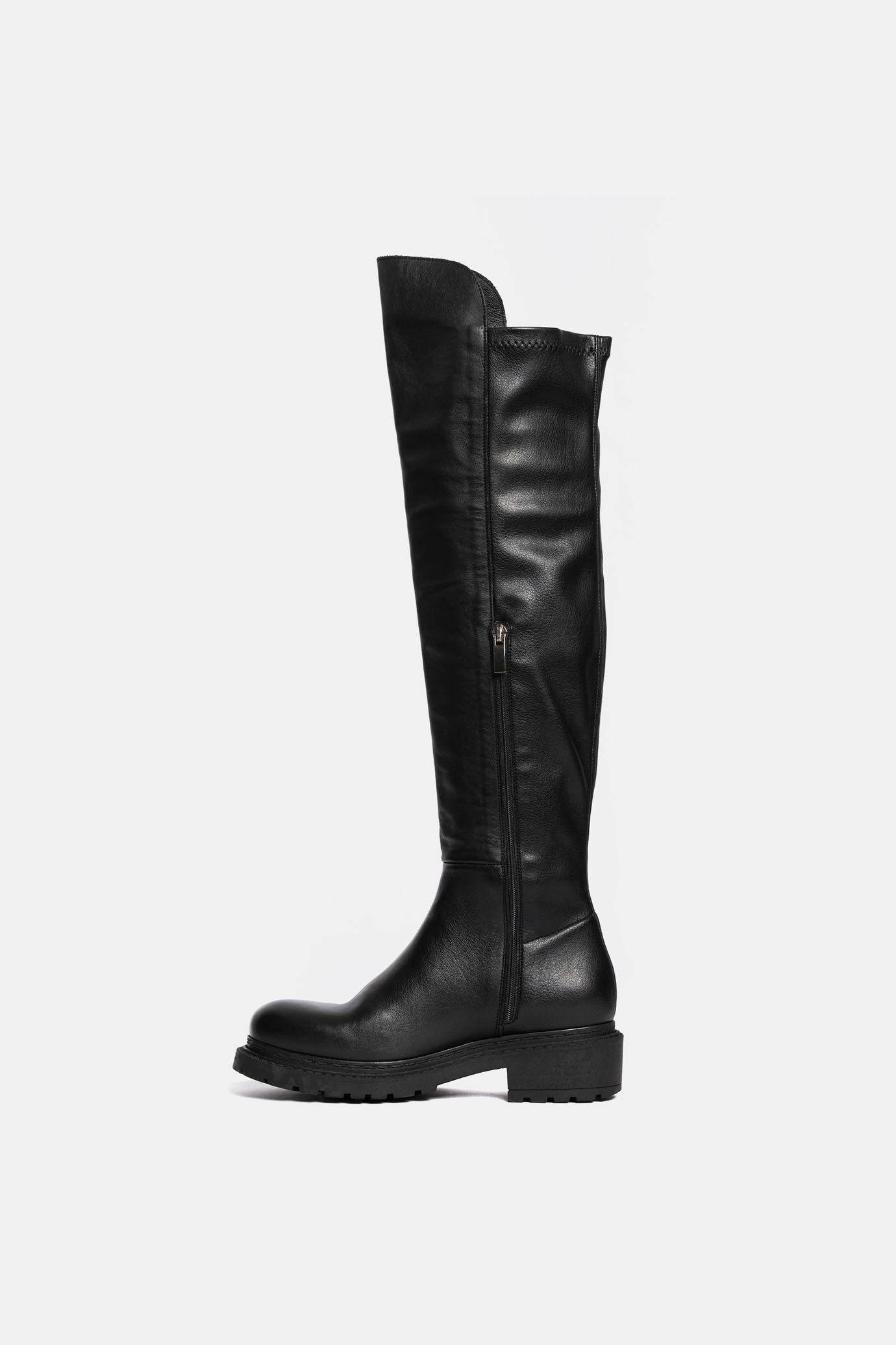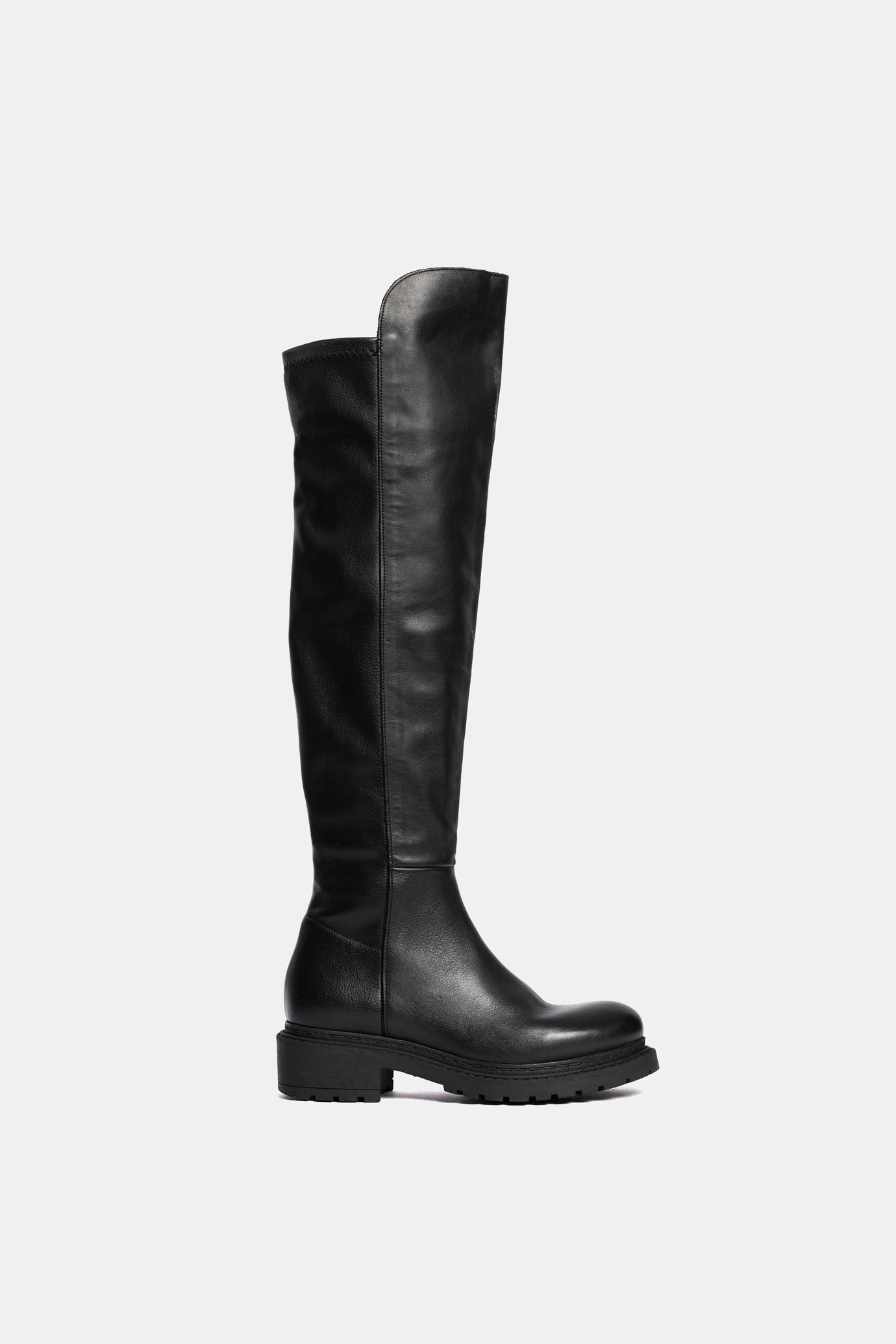 Black calfskin and elastic nappa knee-high boots