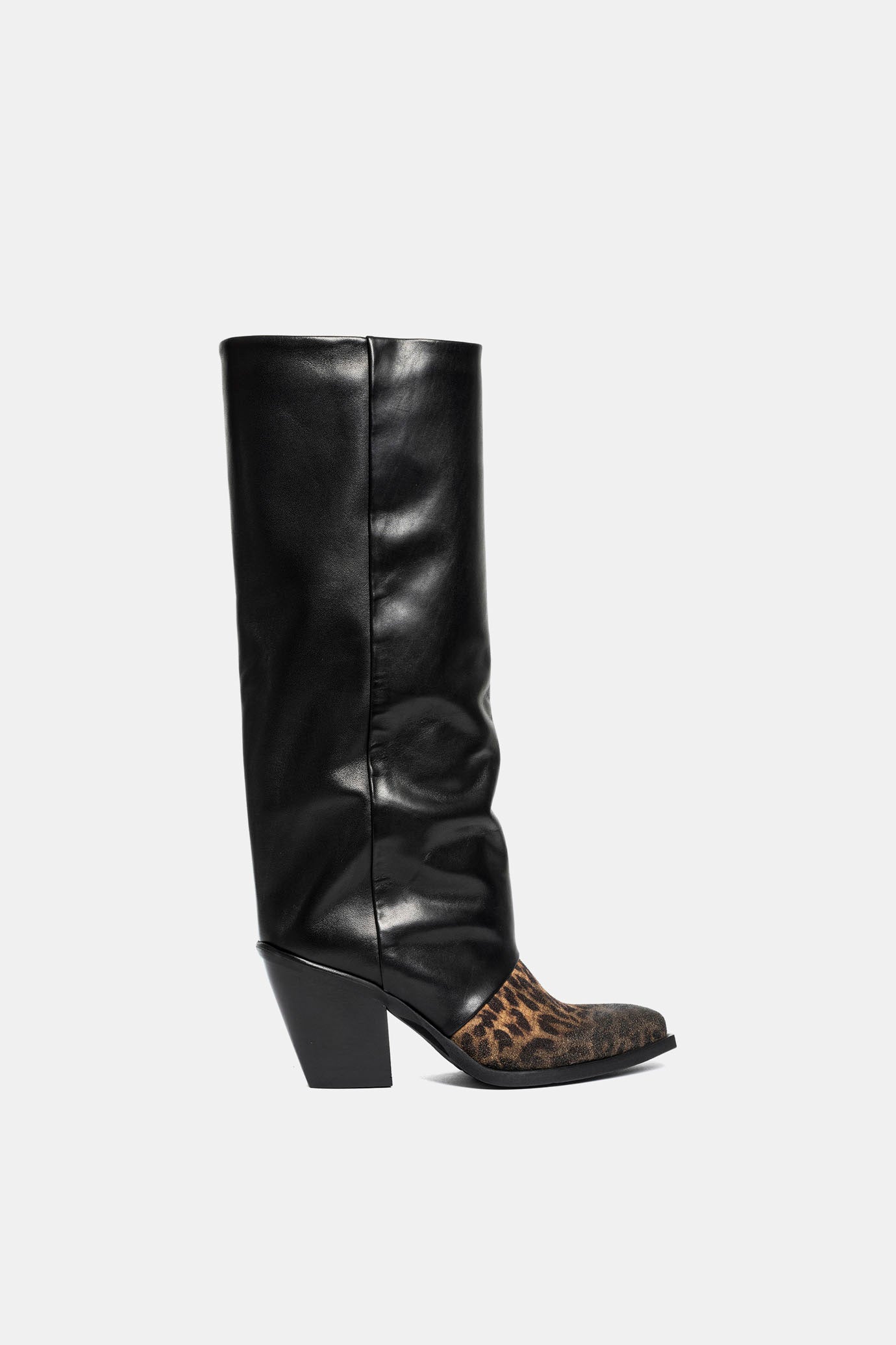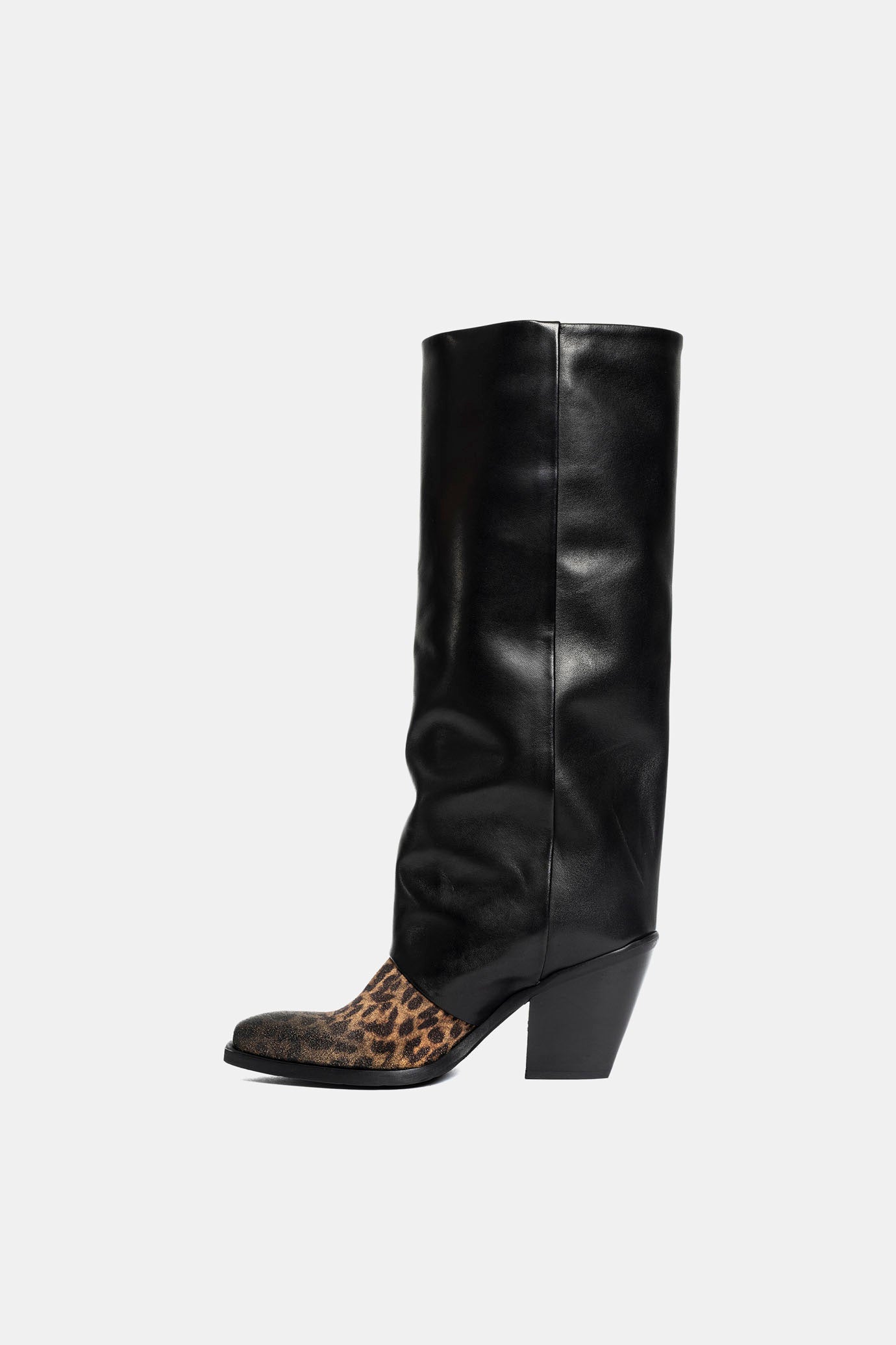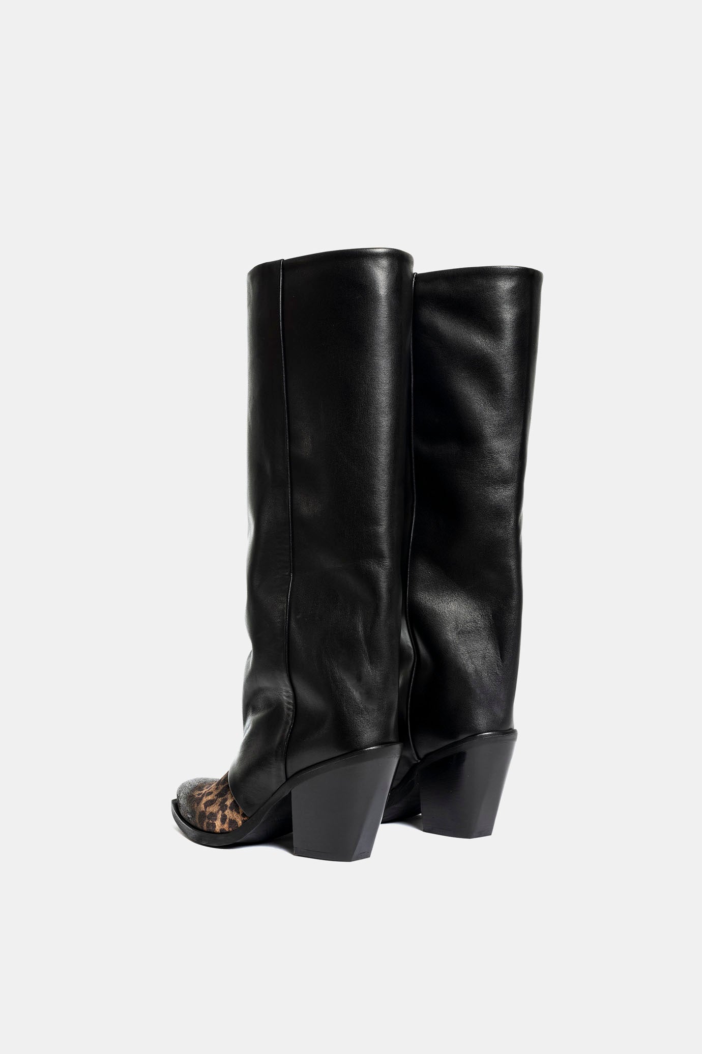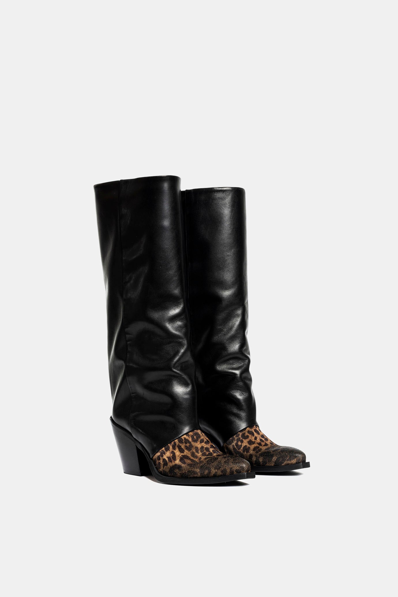 Black and spotted calfskin Texan boots.