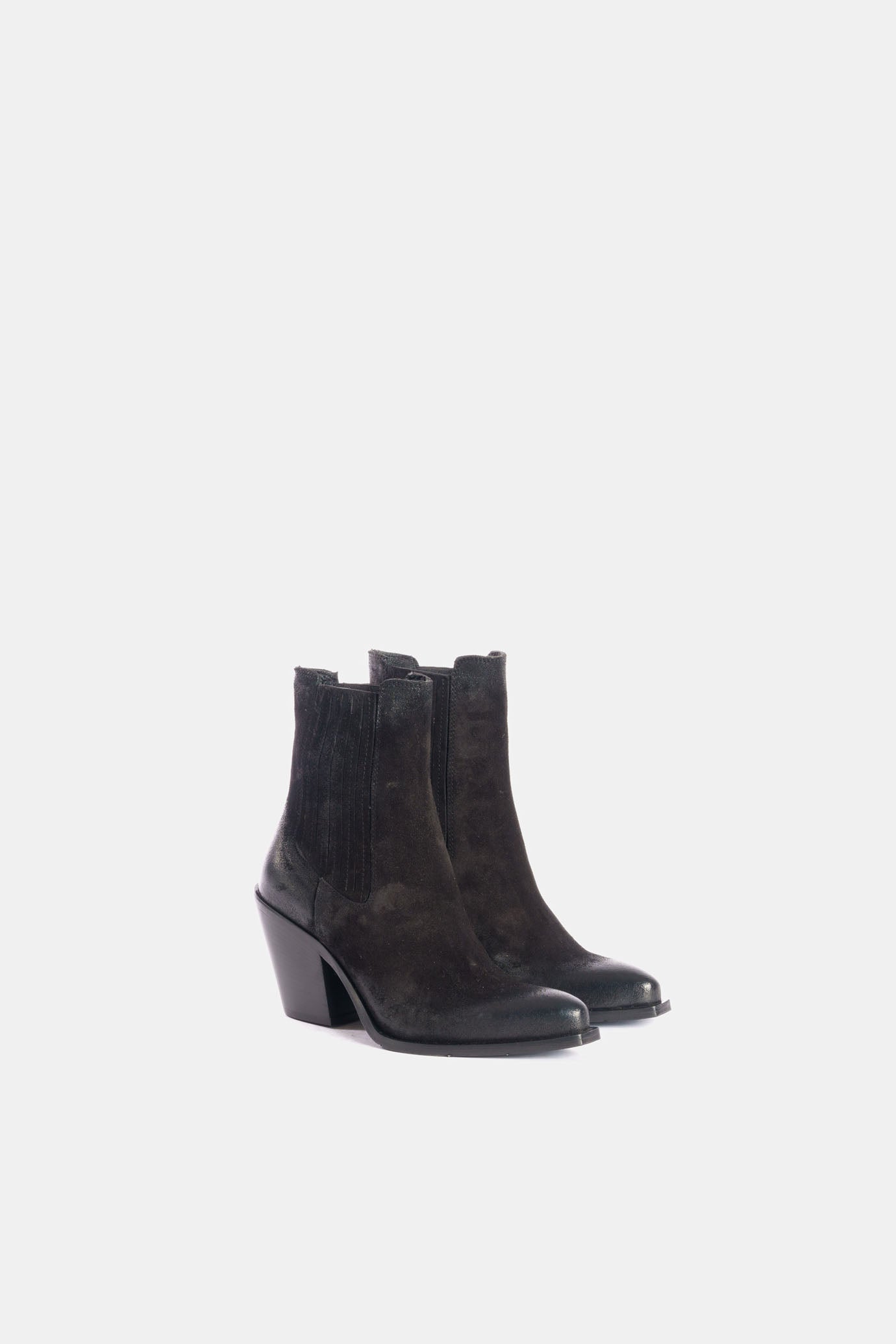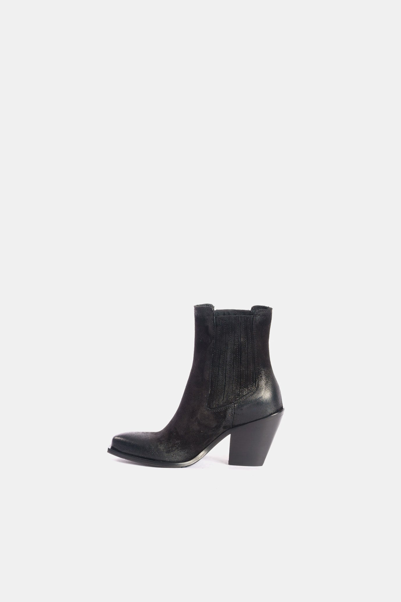 Beatles ankle boots with elastic sides made with soft materials and completely brushed and aged by hand.