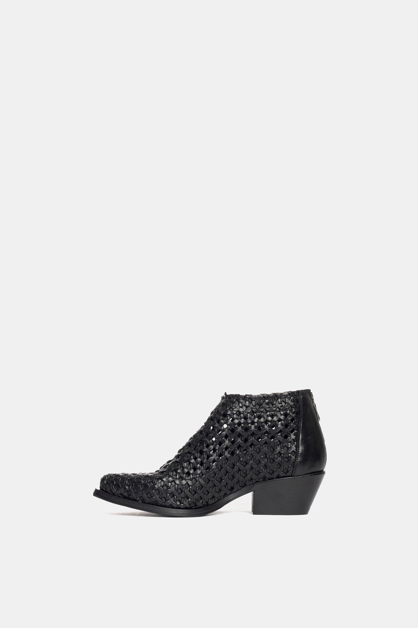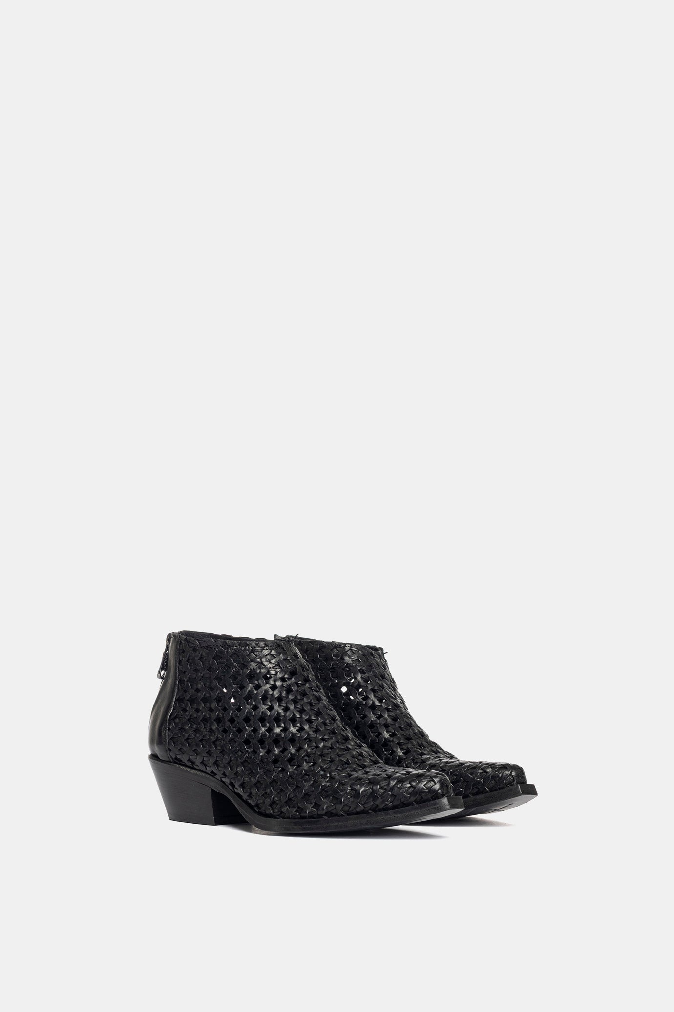 Black rag Texan ankle boots. Upper entirely hand-woven.