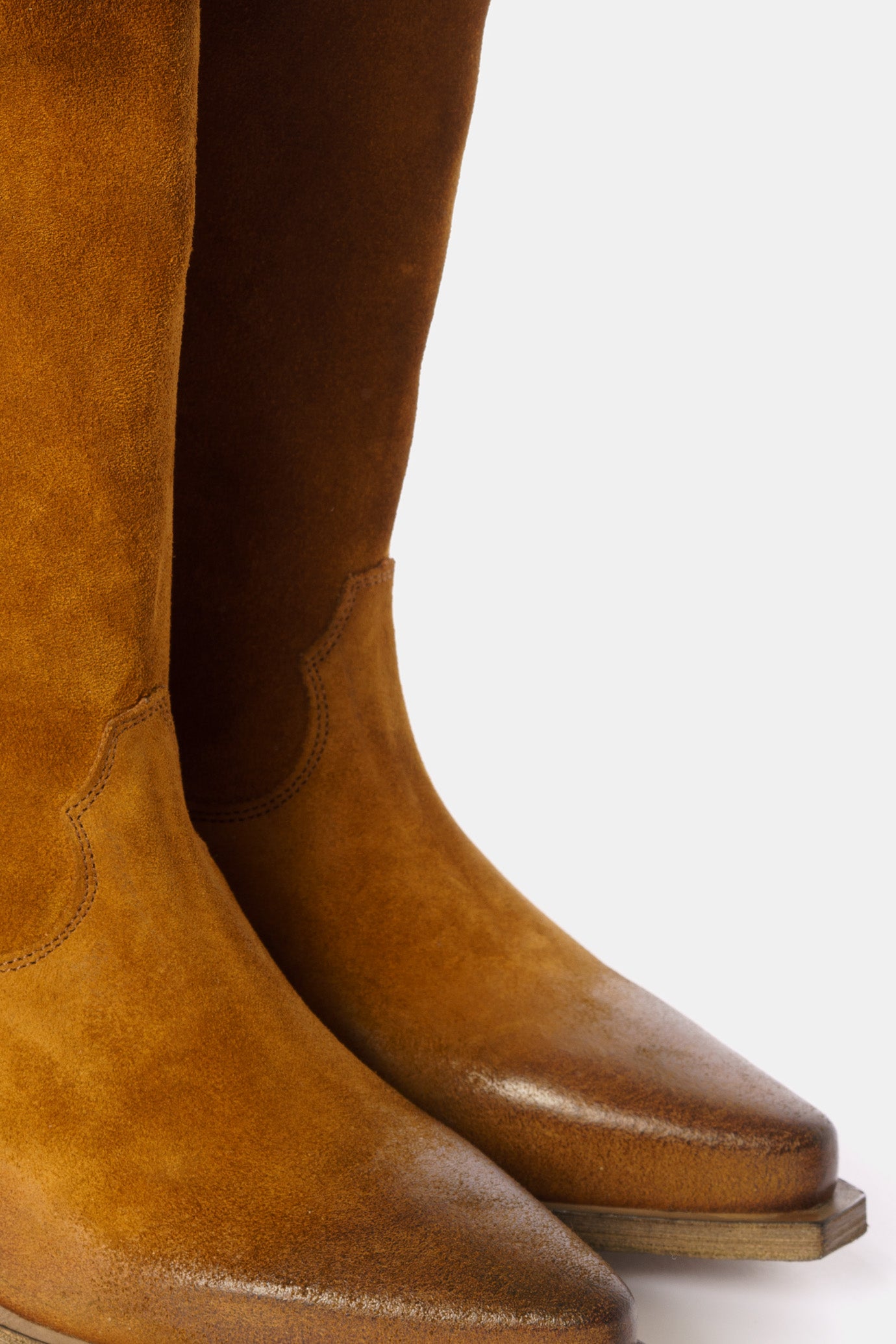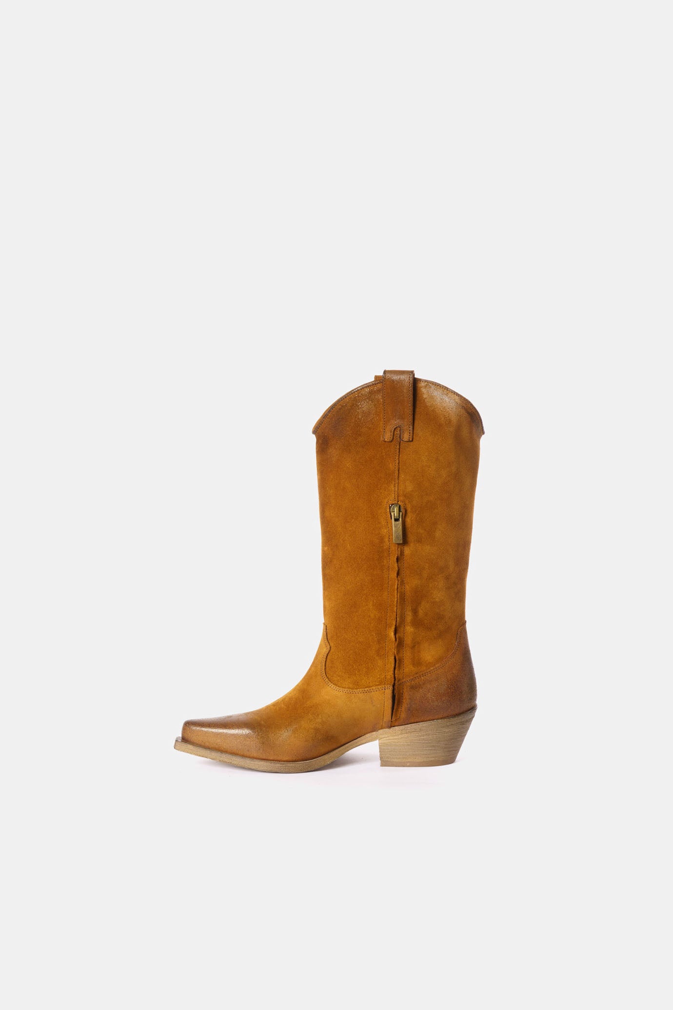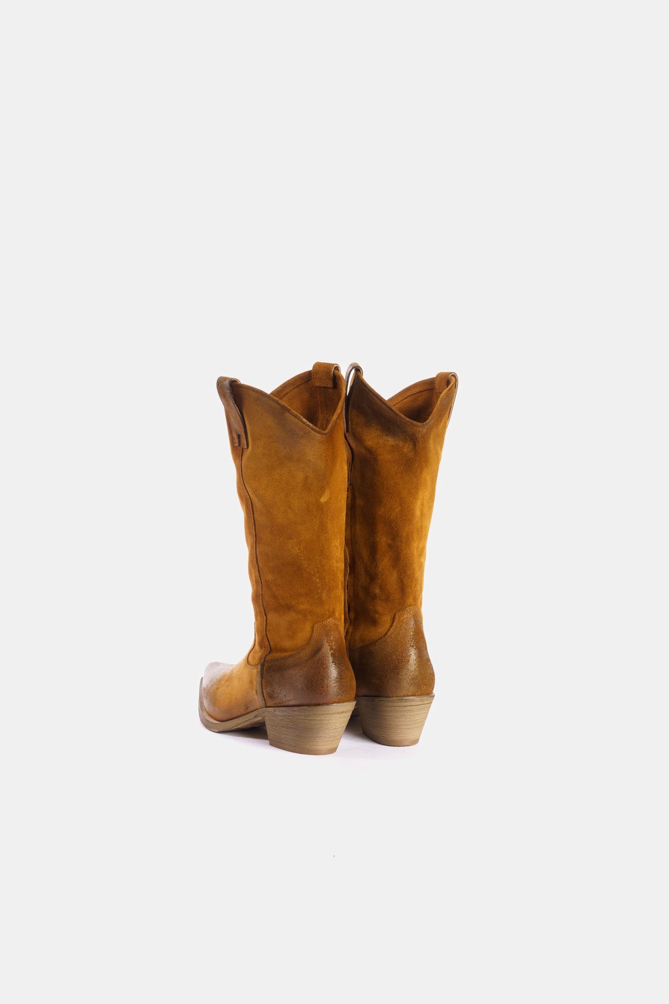 Boots made with soft materials and completely brushed and aged by hand