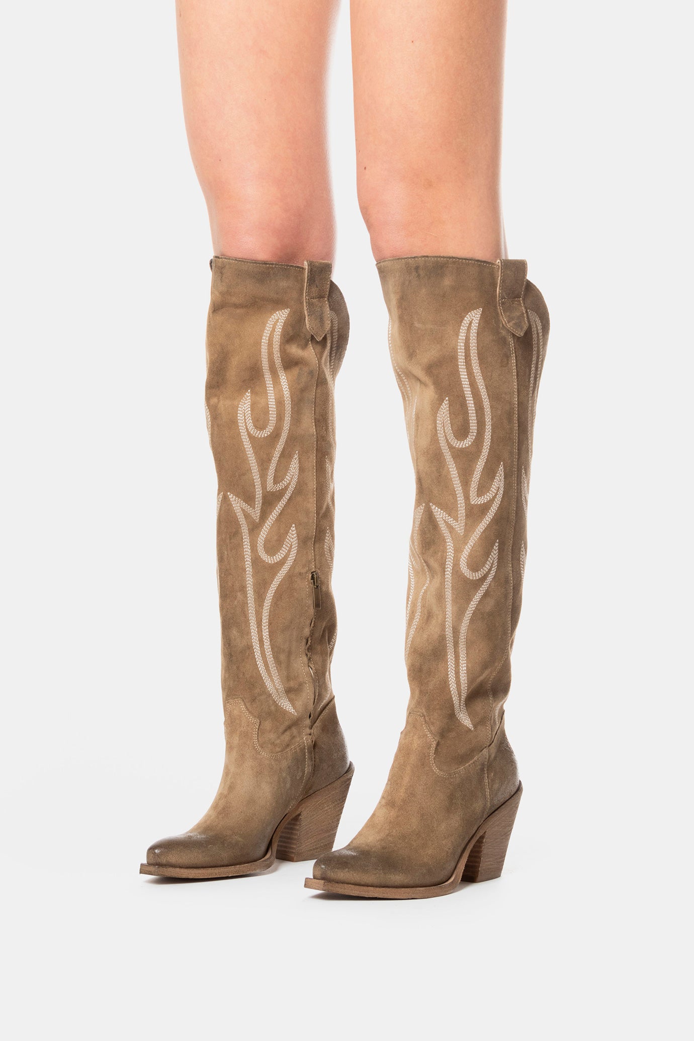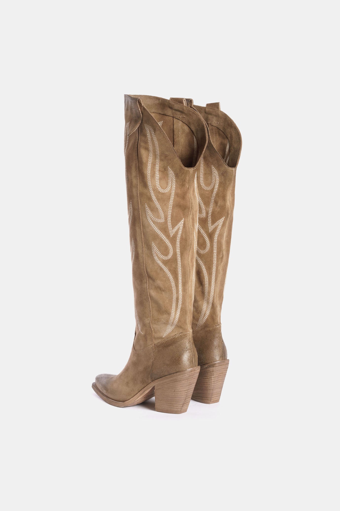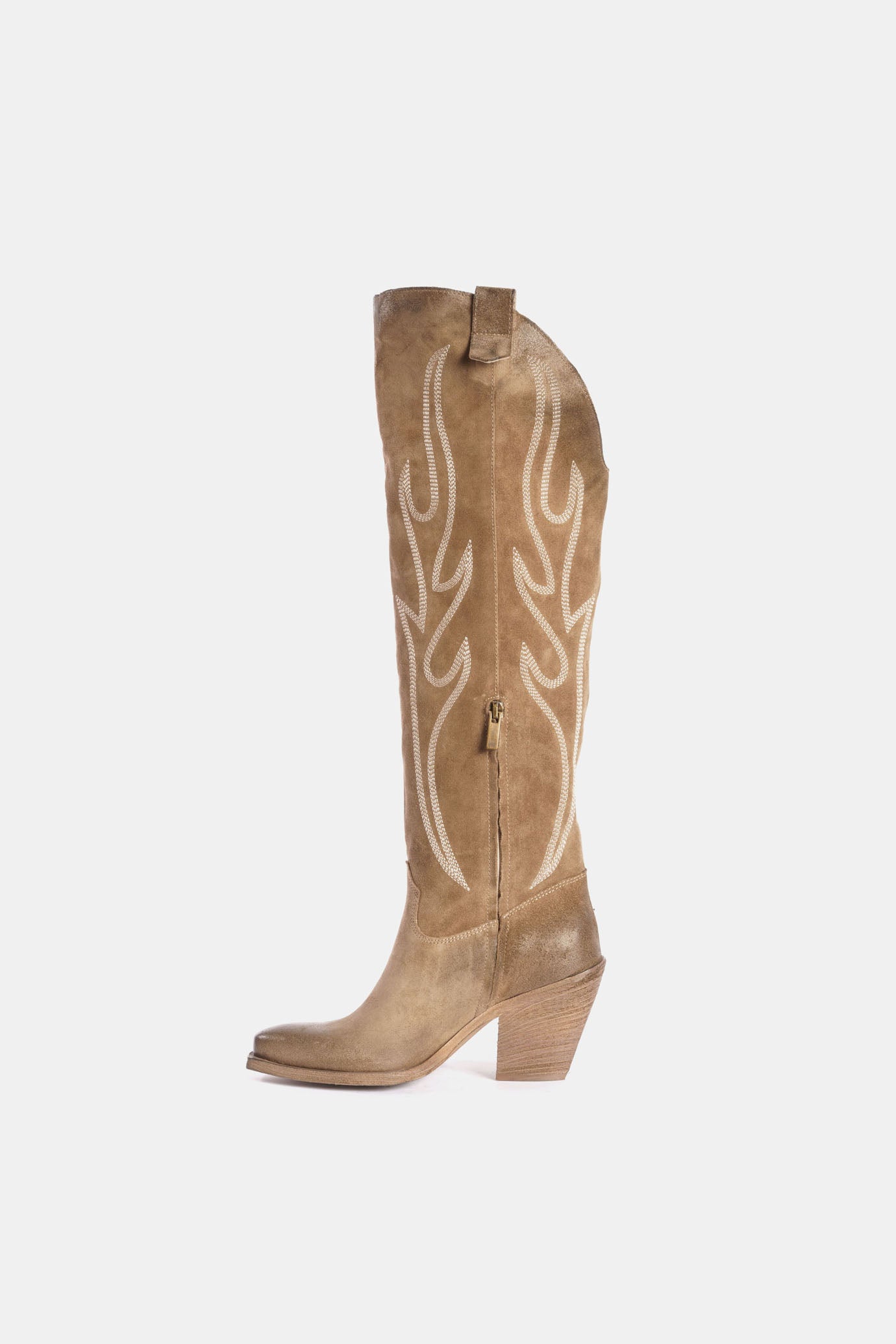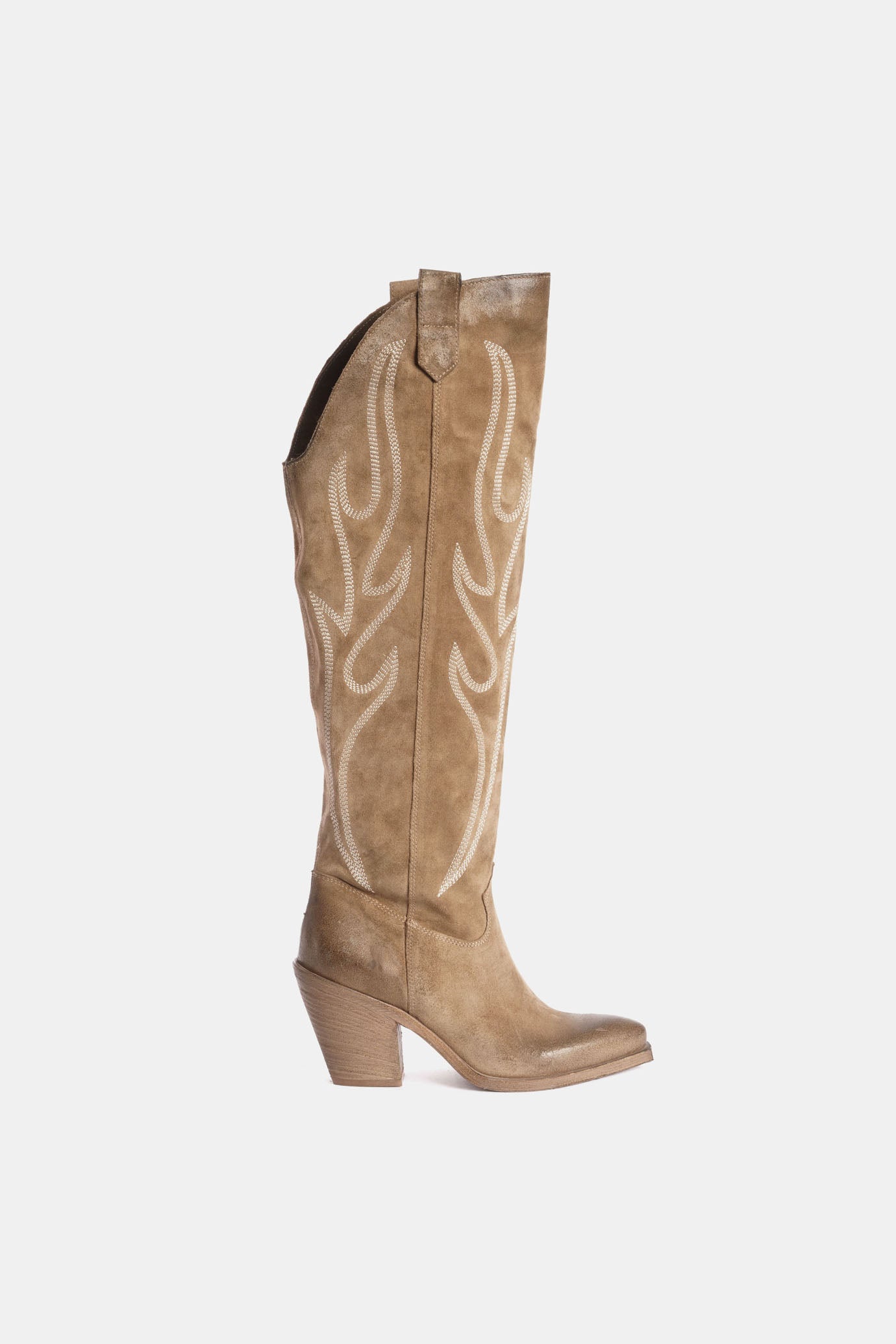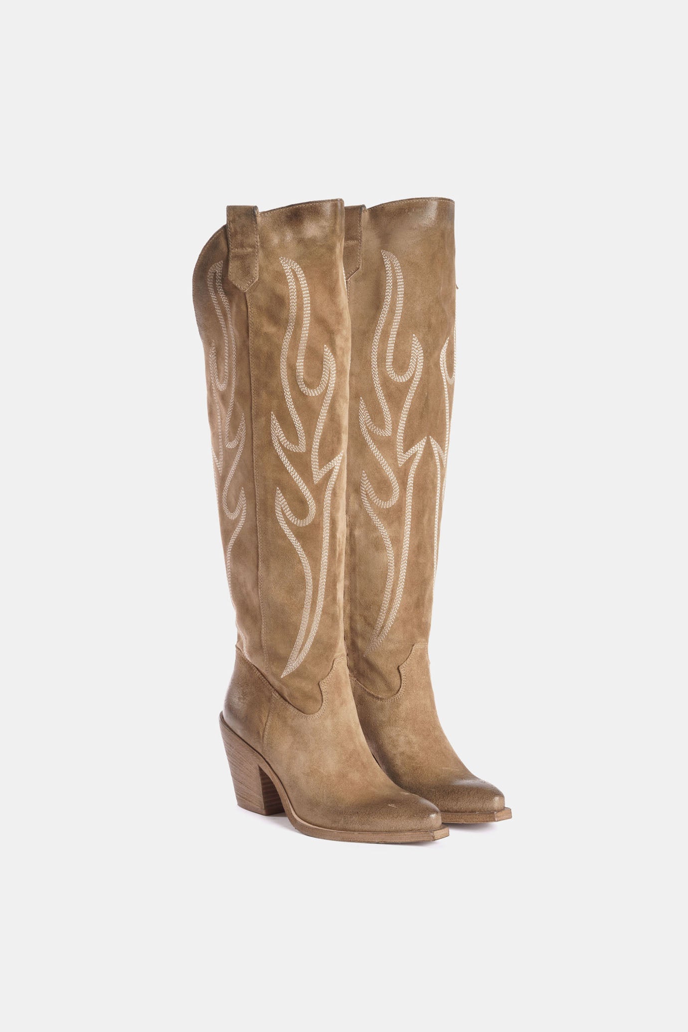 Stivali texani alti al ginocchio con applicazioni ricamo