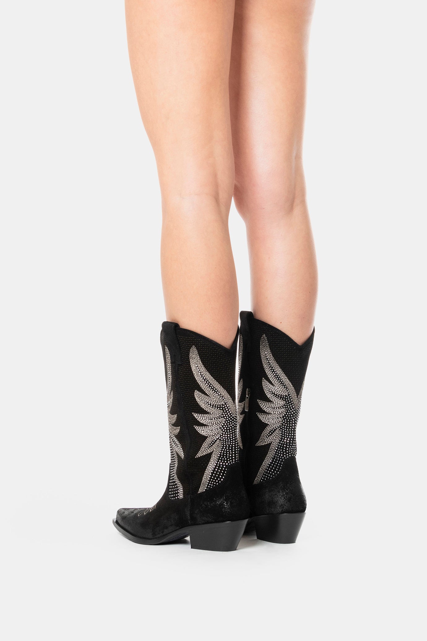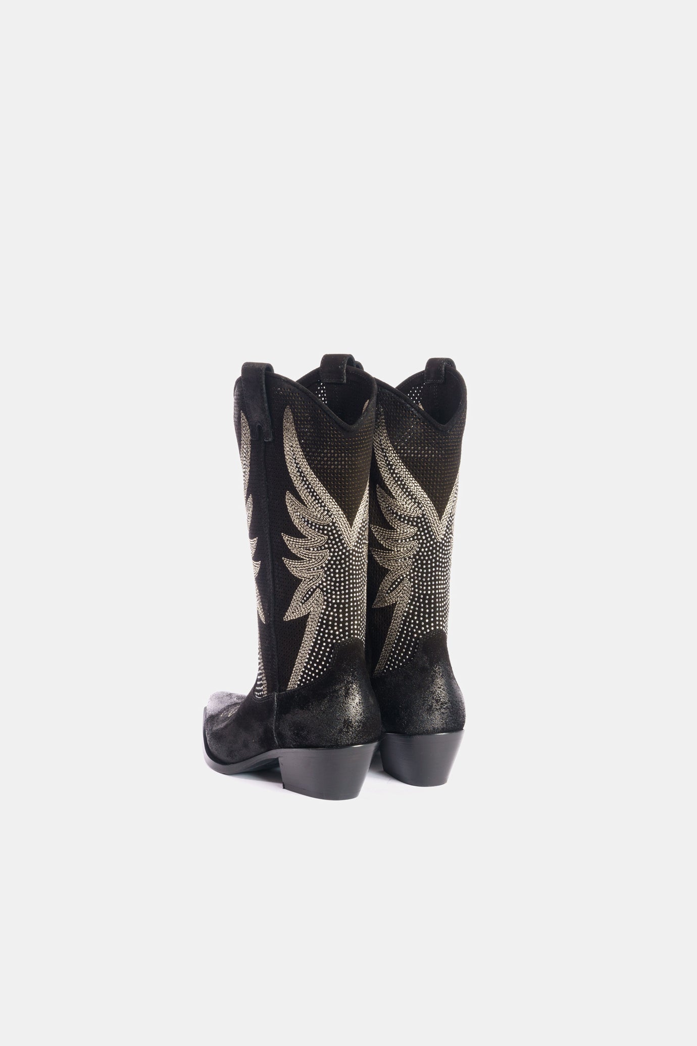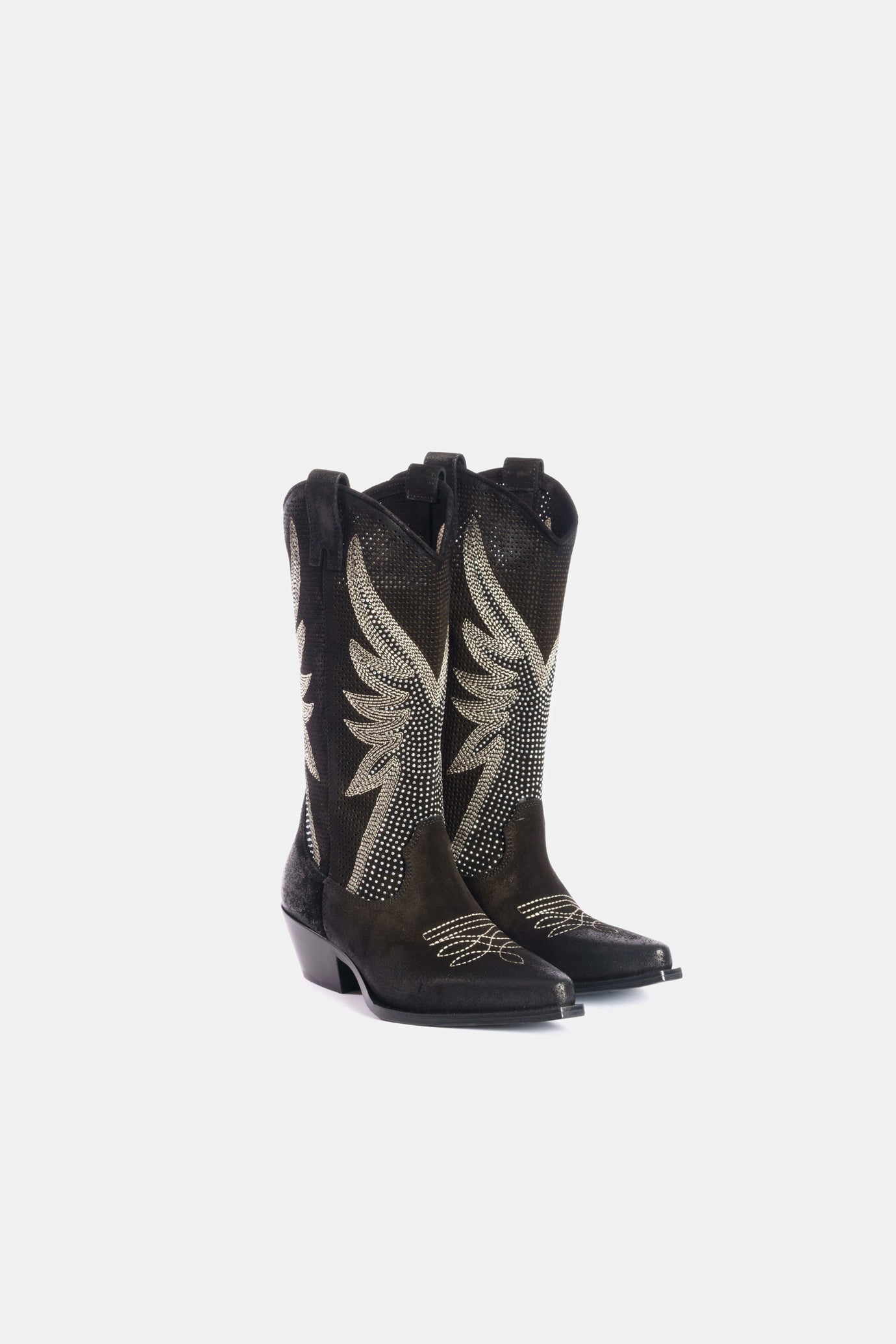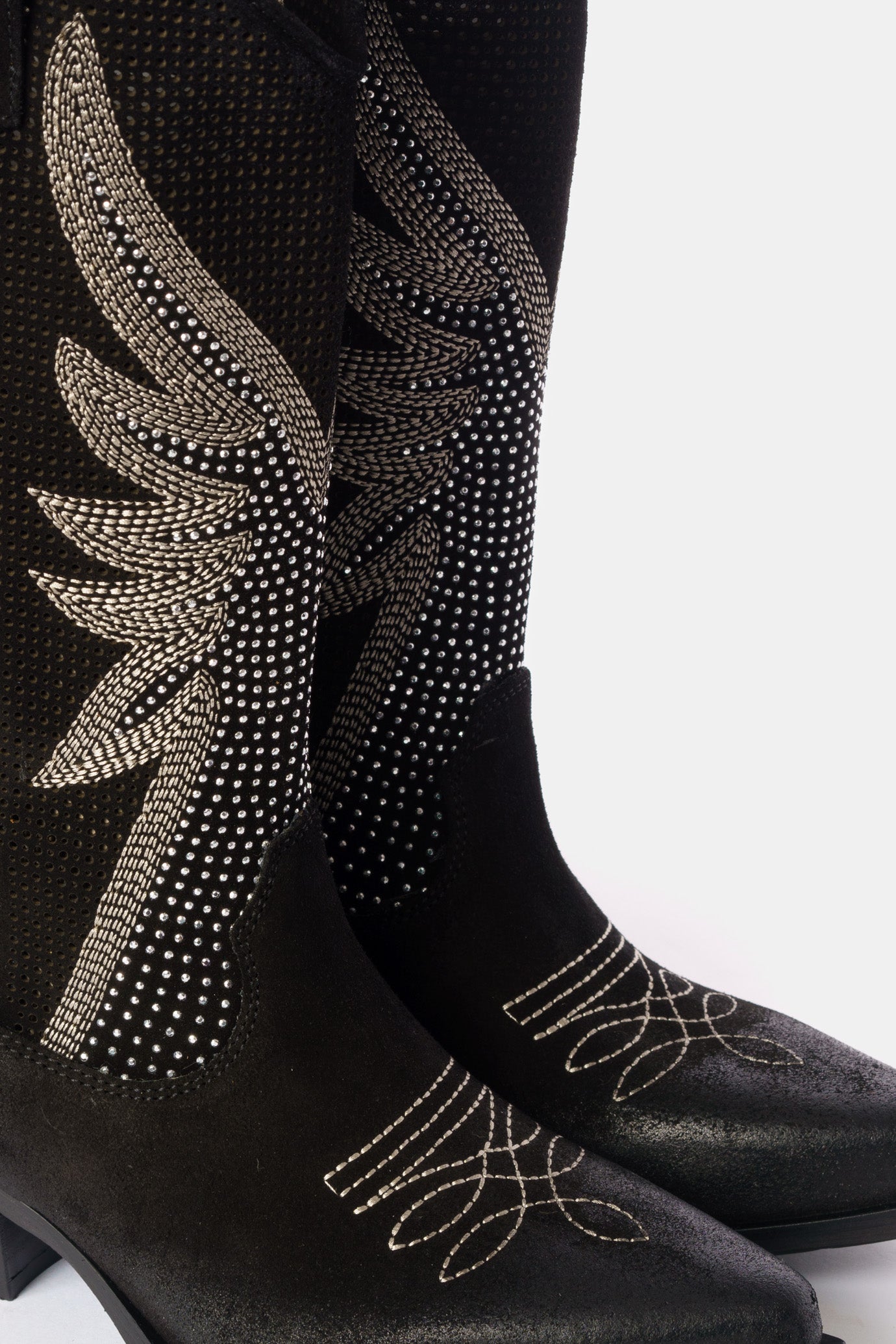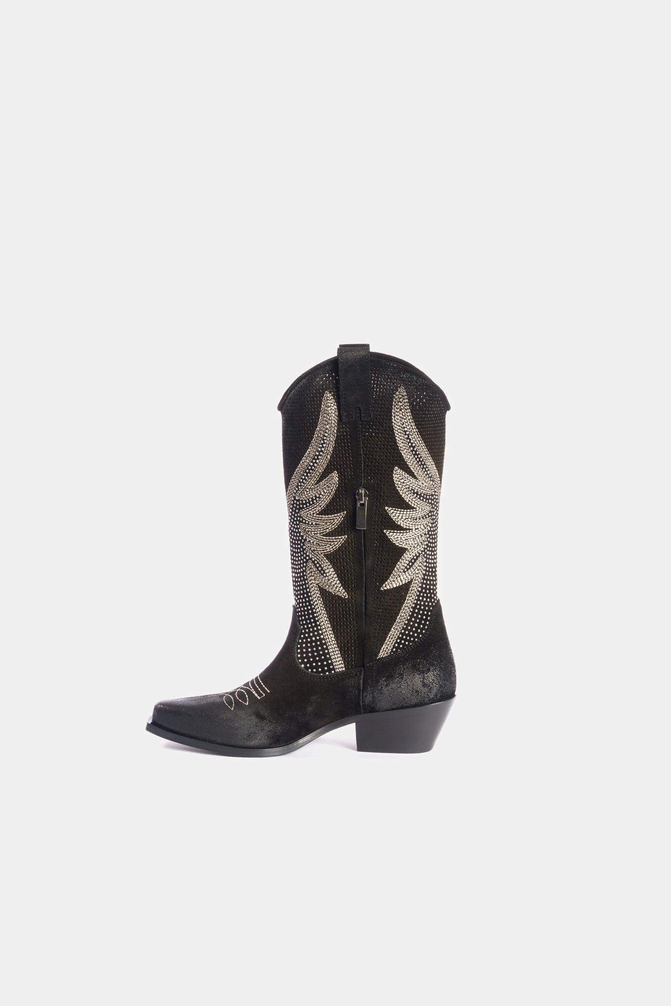 Stivali texani traforati con ricami e impreziositi con applicazione borchie
