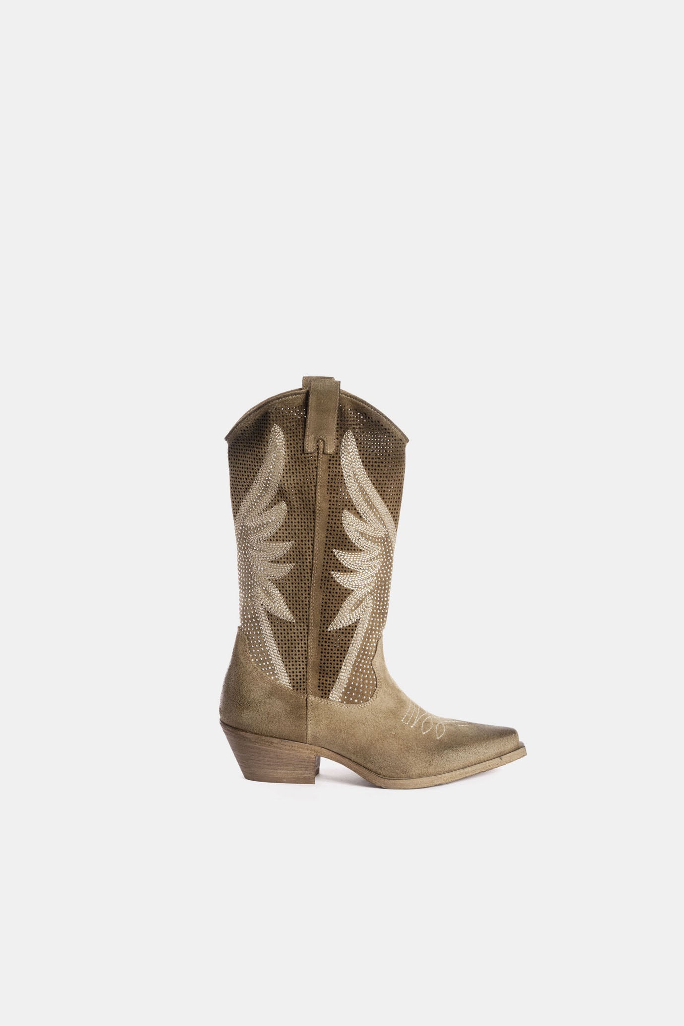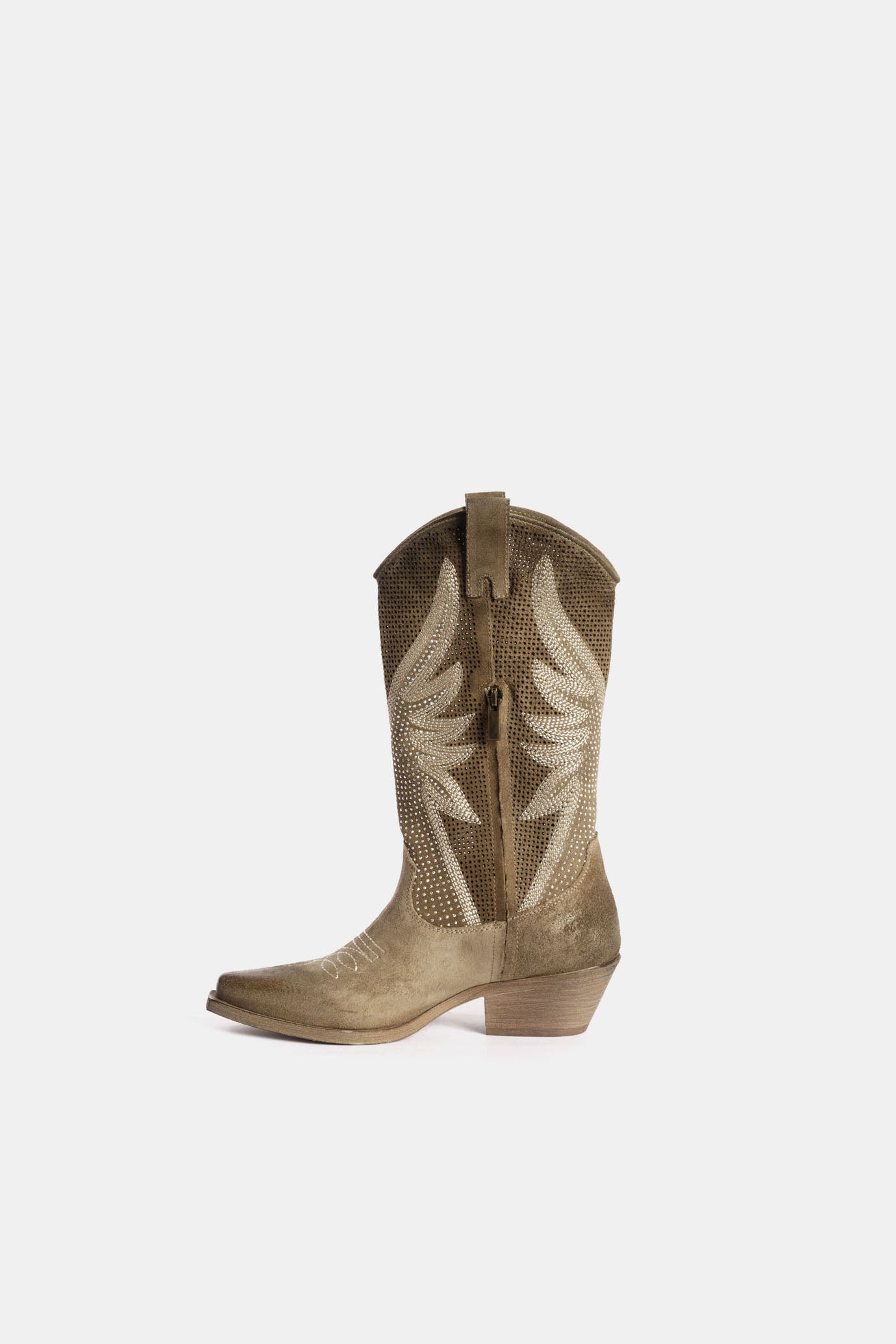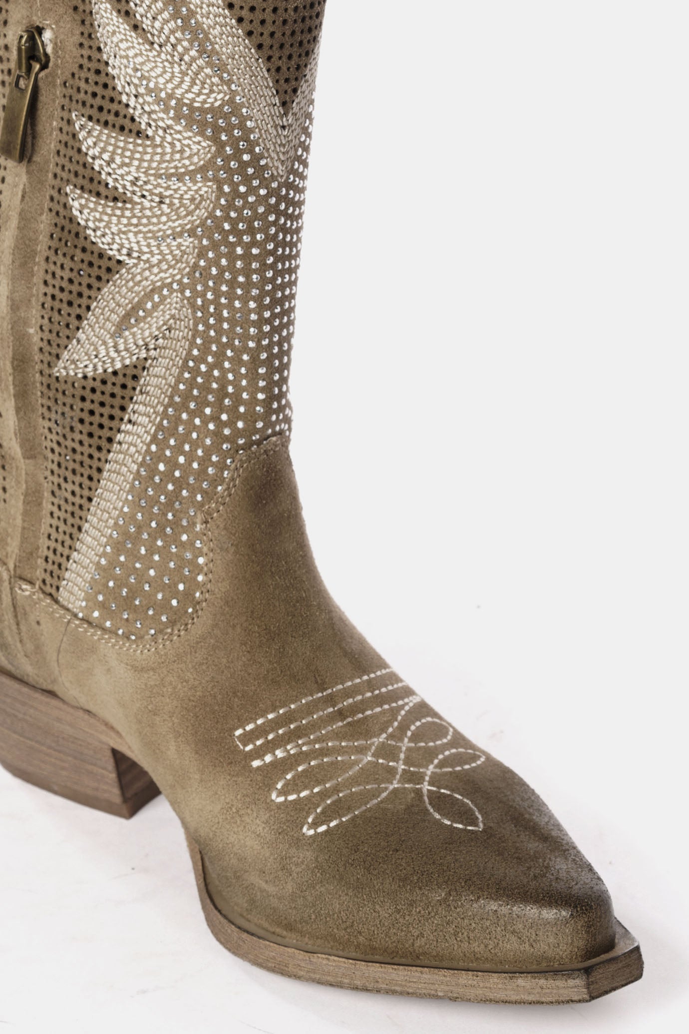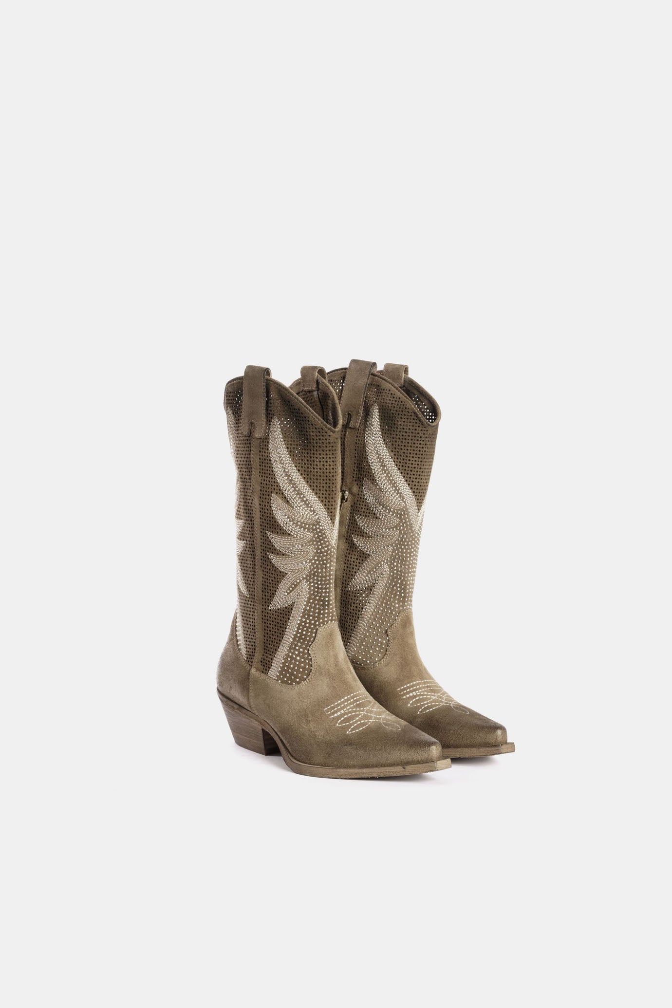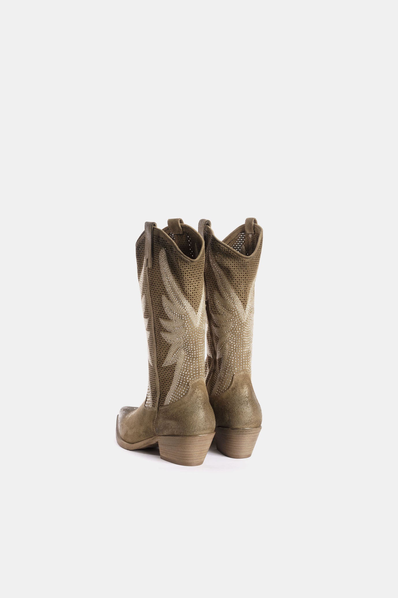 Stivali texani camoscio tortora con borchie DX834