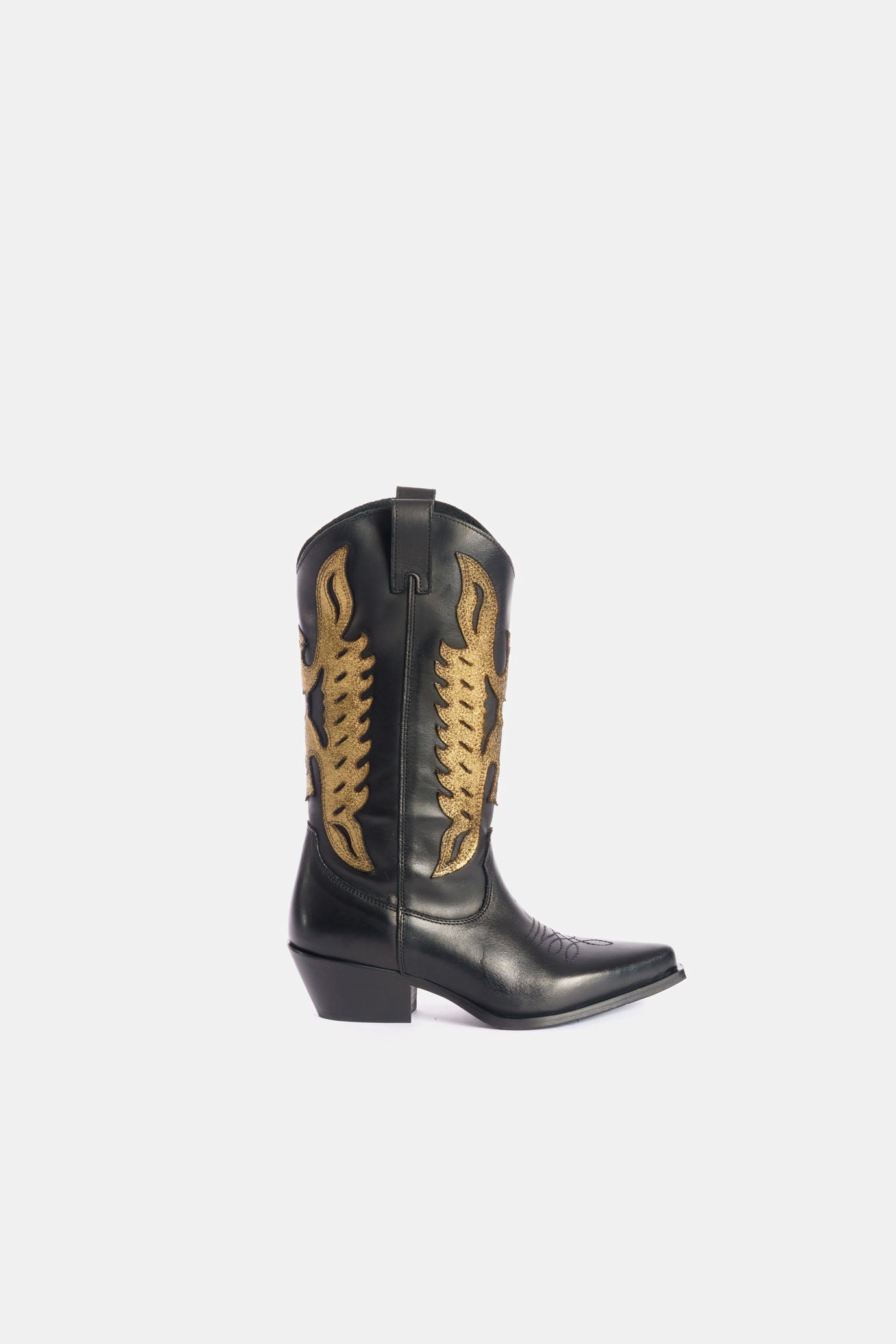 Stivali texani vitello nero e oro DX822