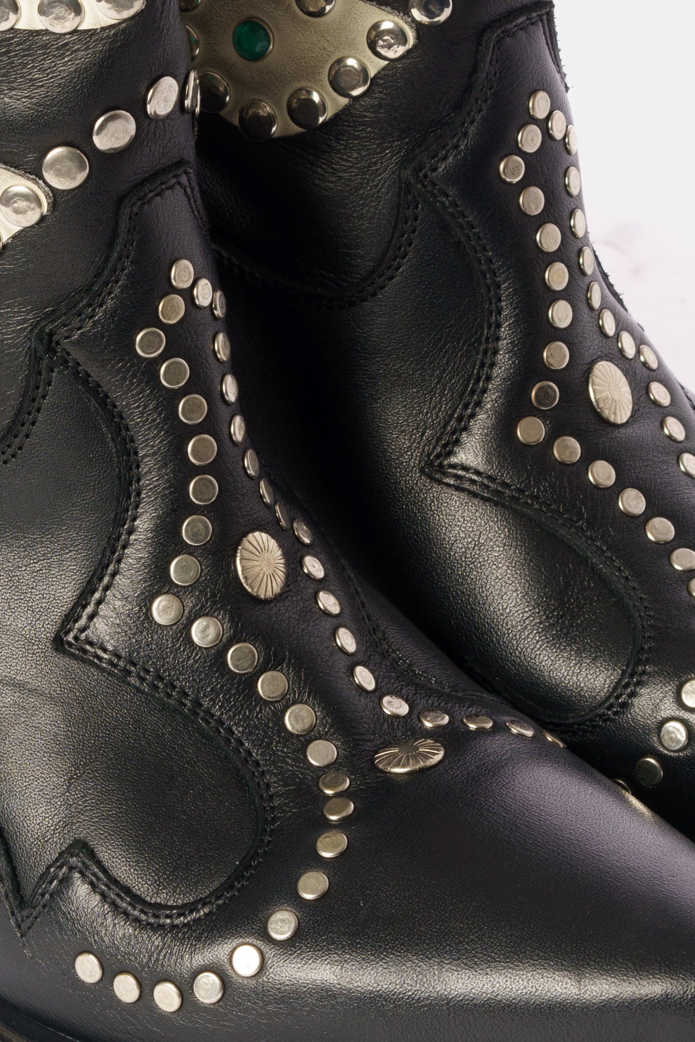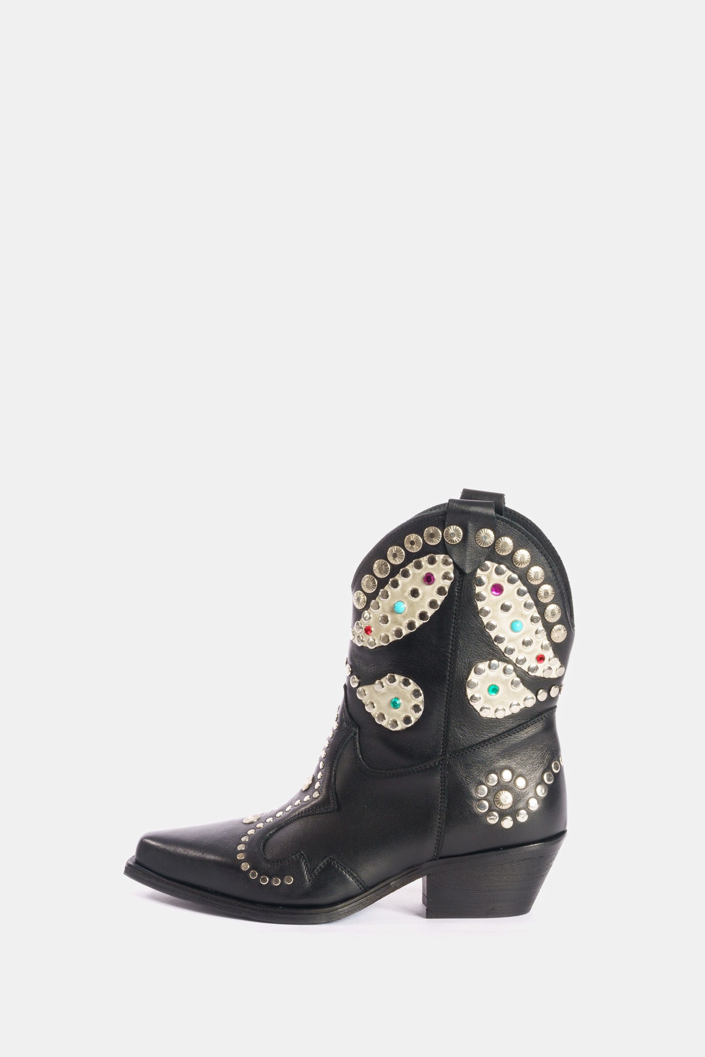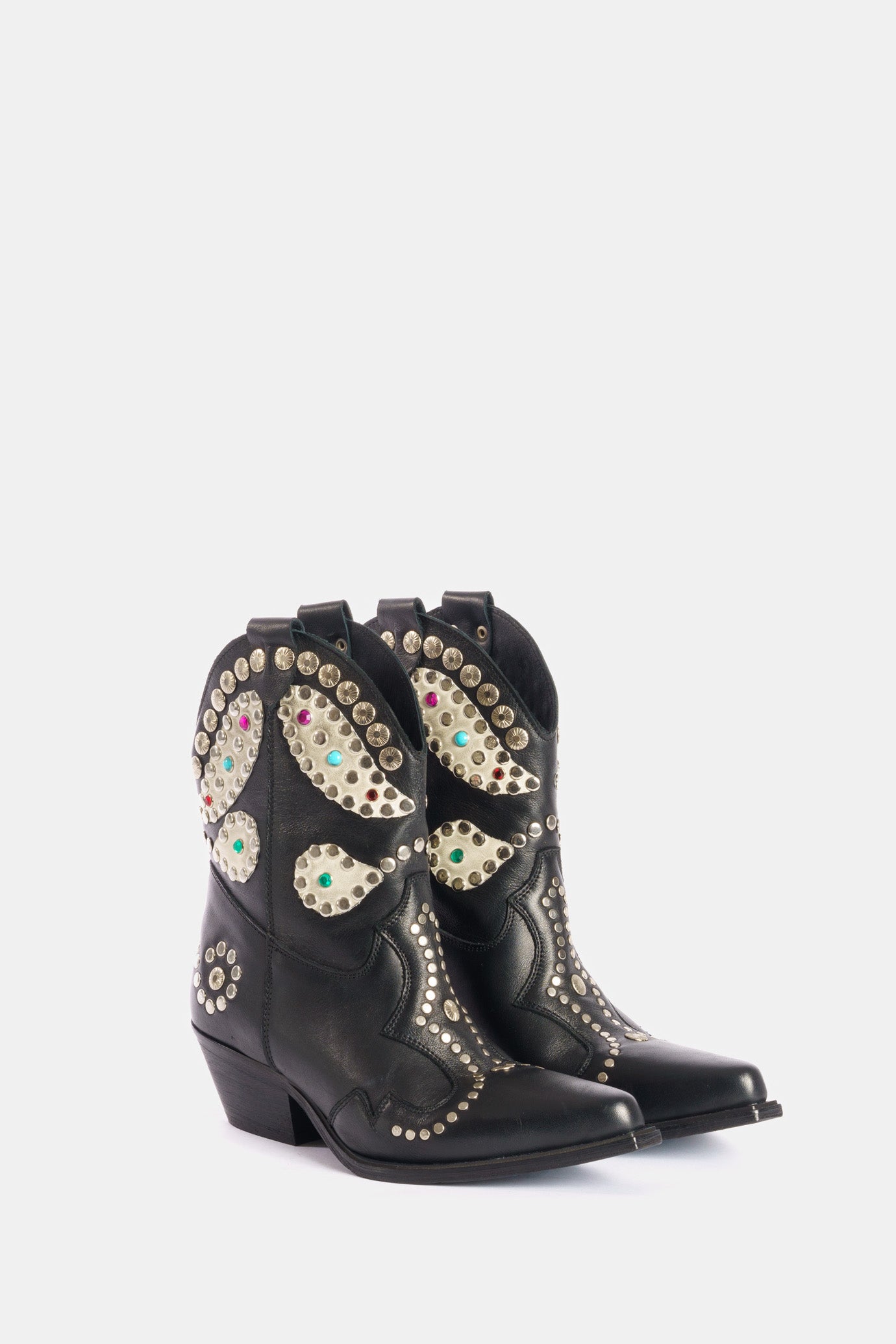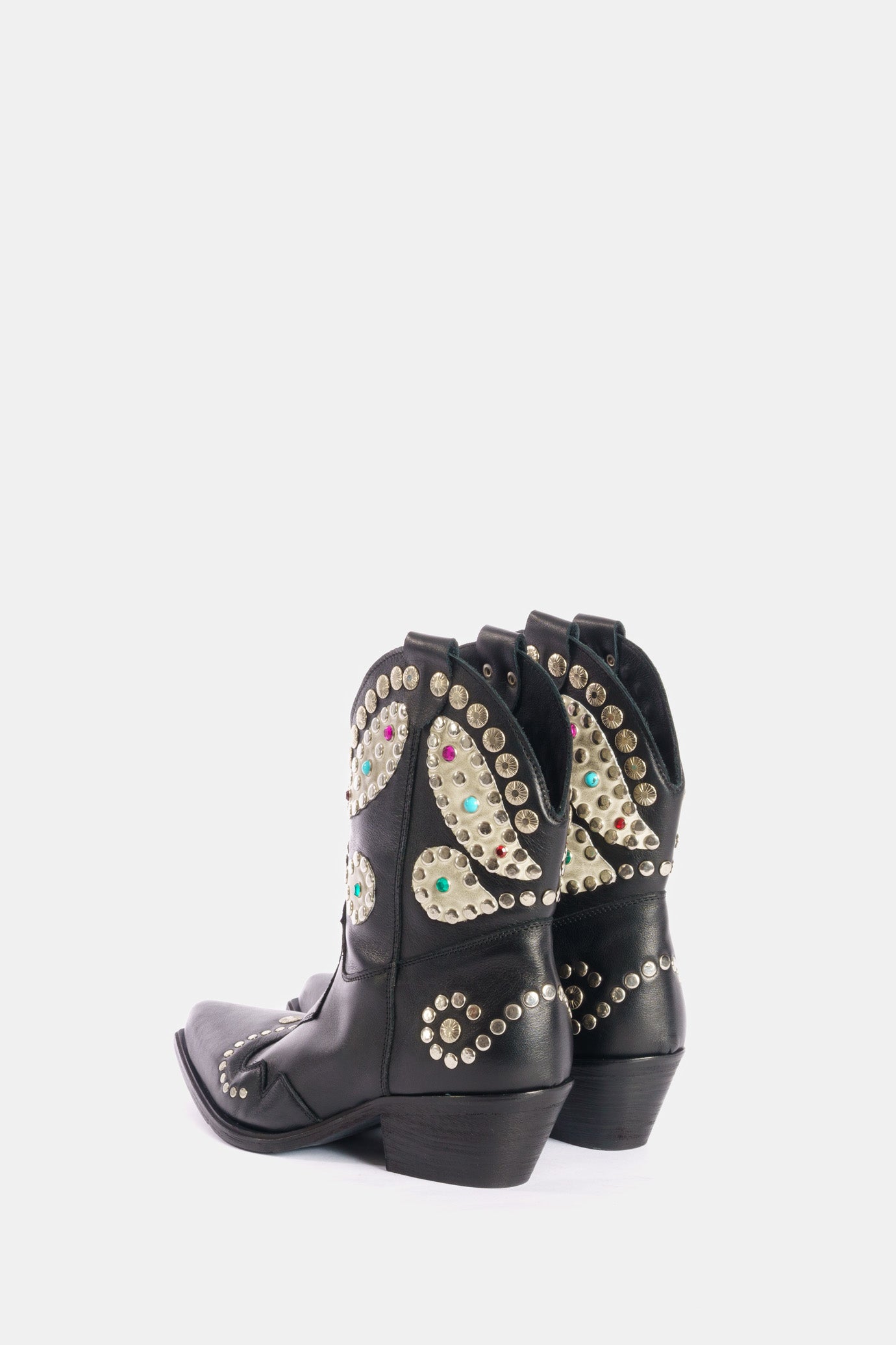 Tronchetti texani vitello nero con applicazioni multicolor DX738