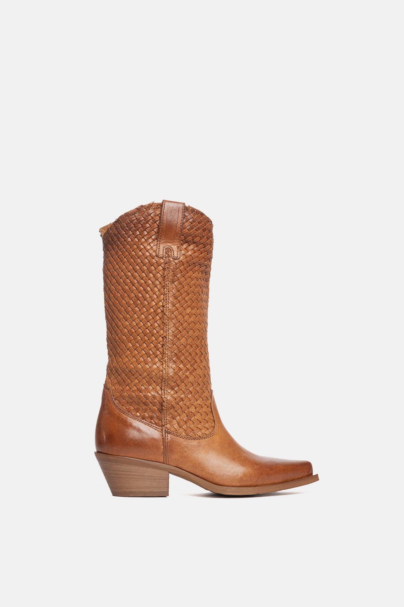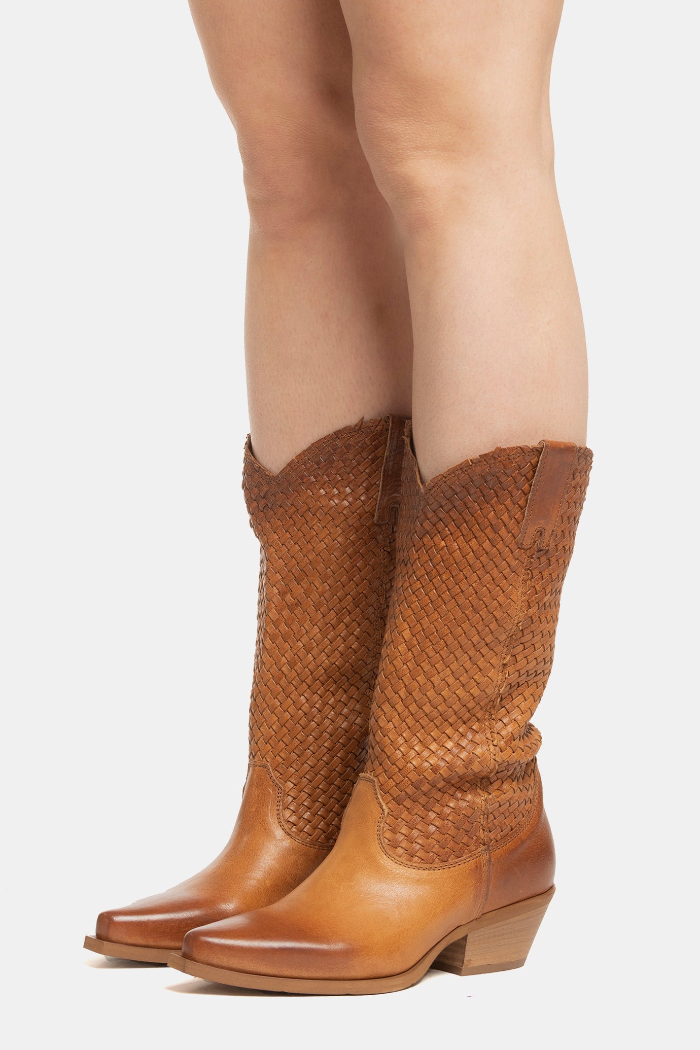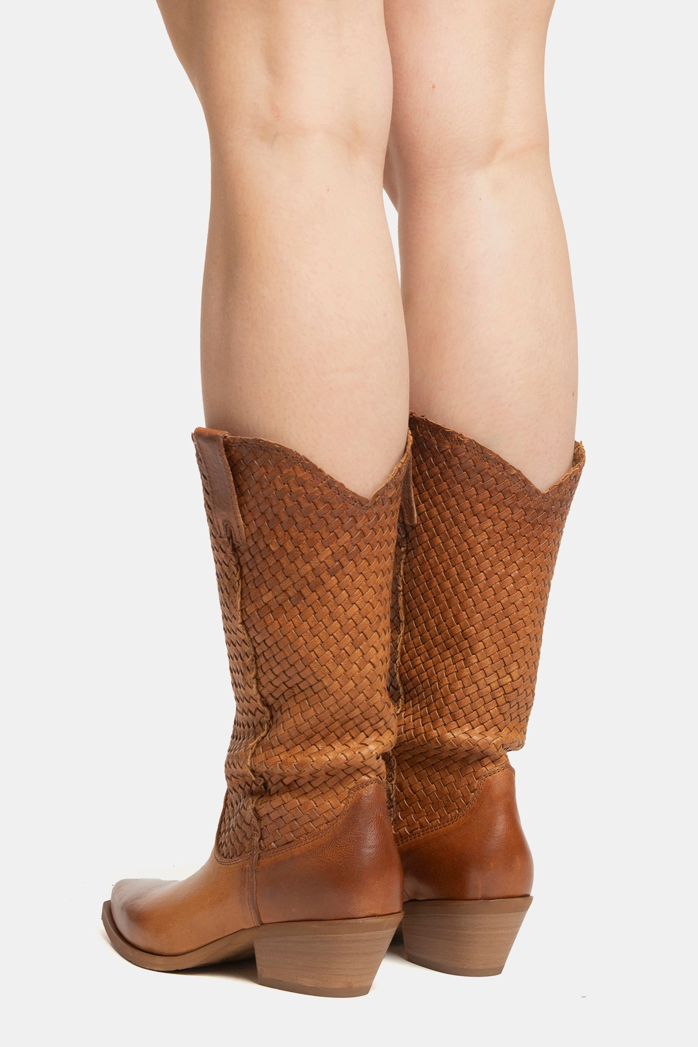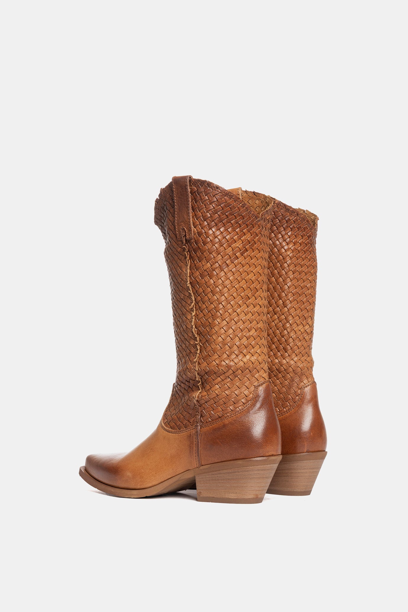 Bottes texanes en cuir de chiffon avec tige tissée à la main.