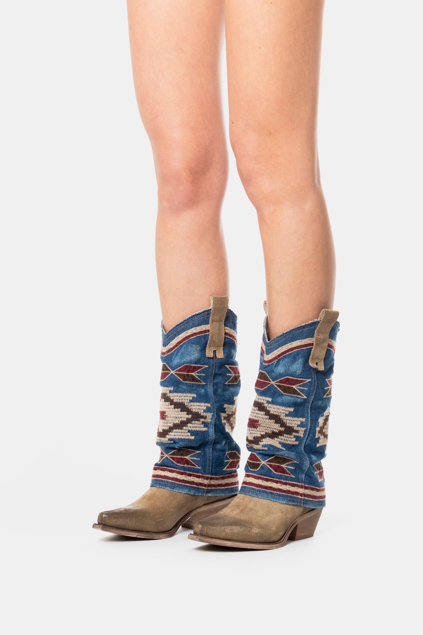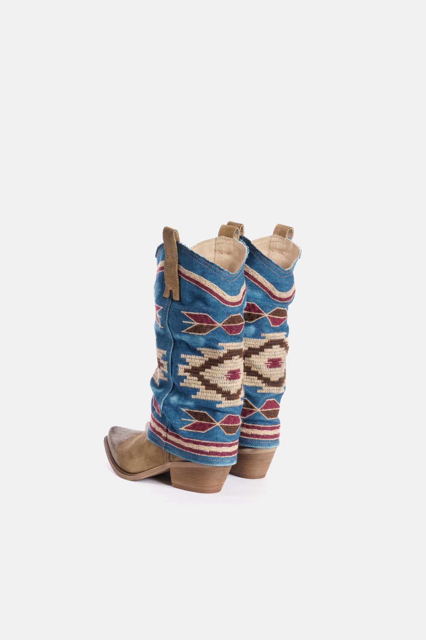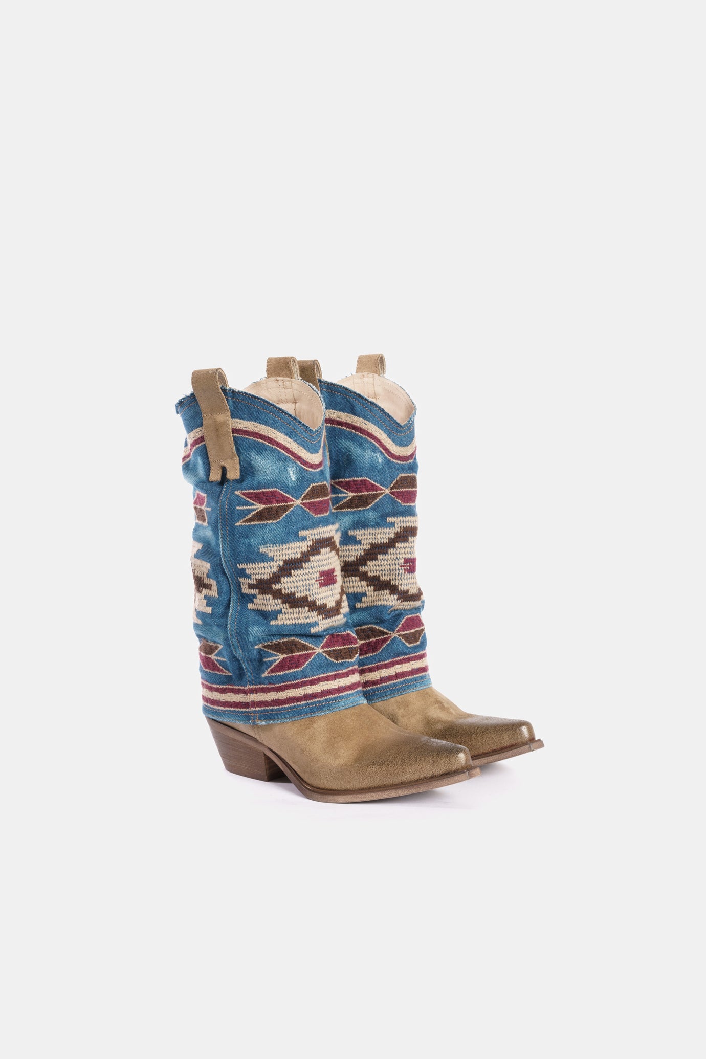 Stivali texani camoscio tortora e jeans vintage con ricami etnici DX638